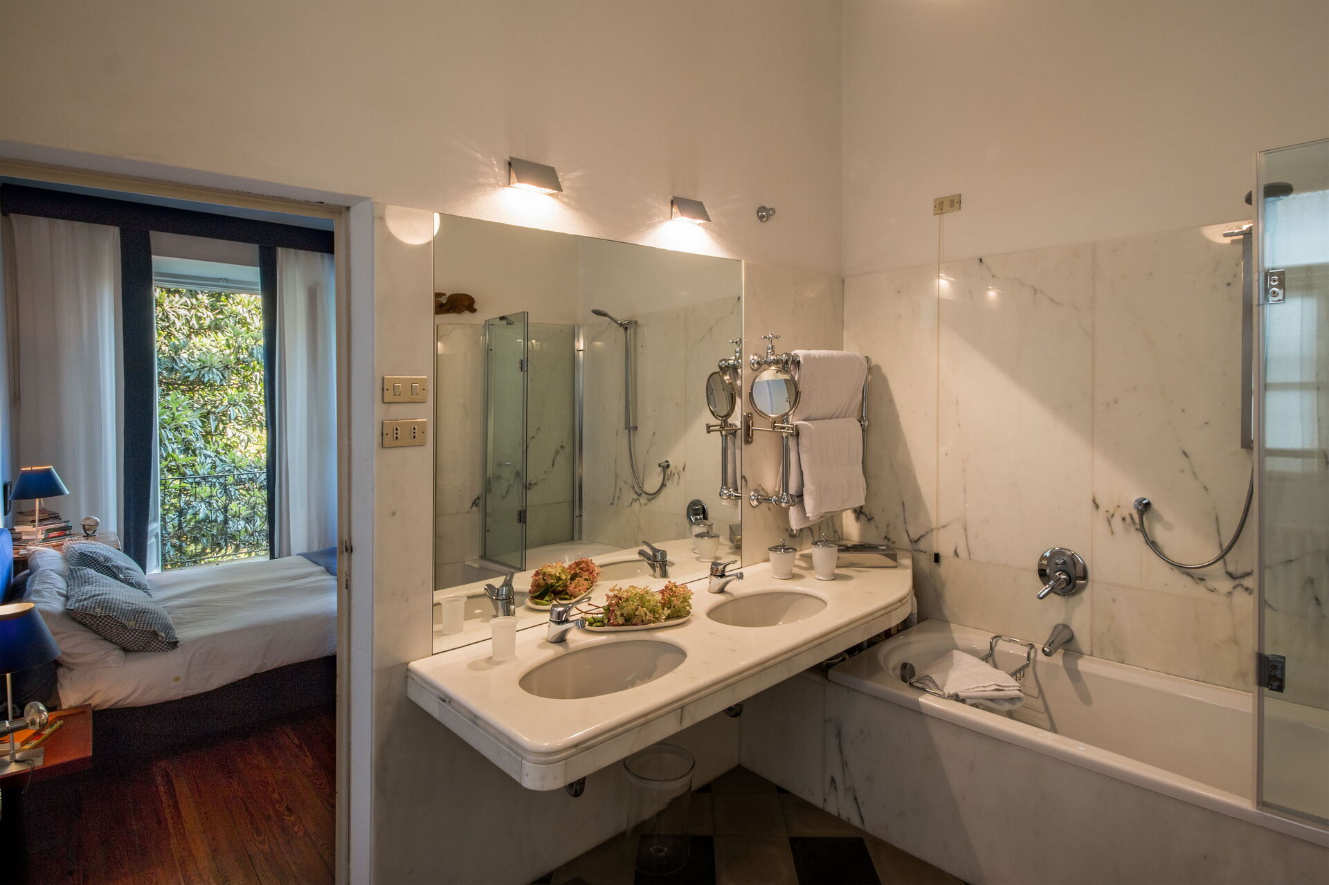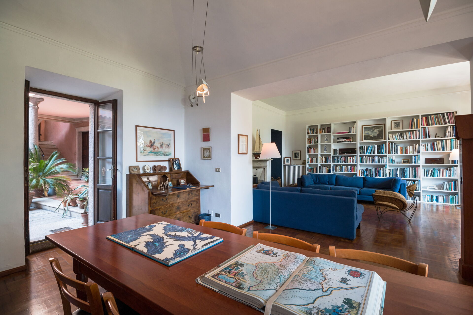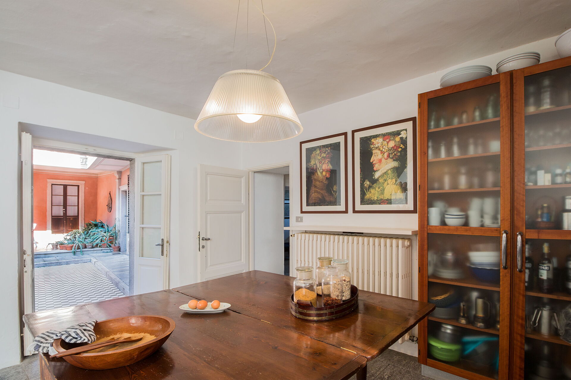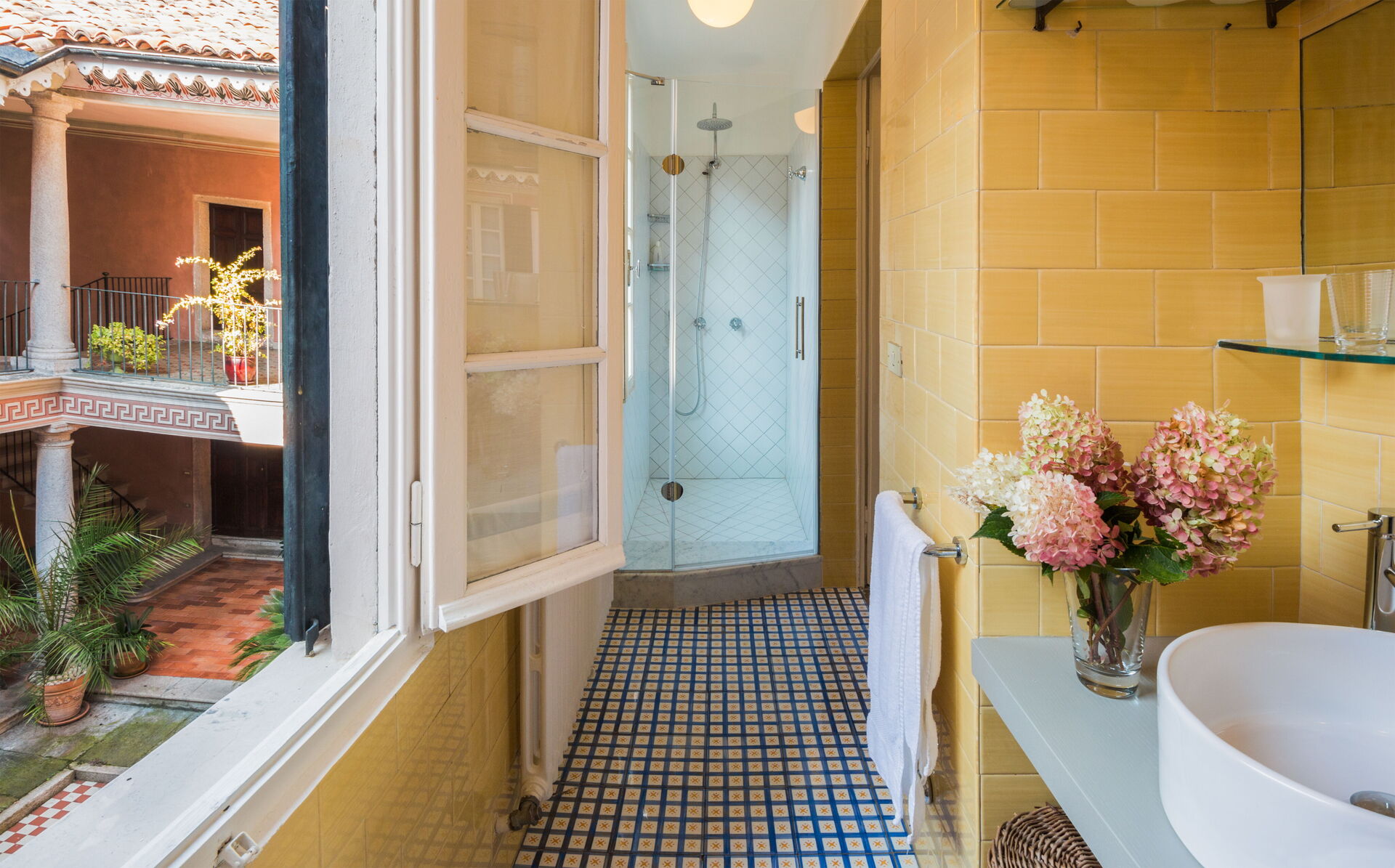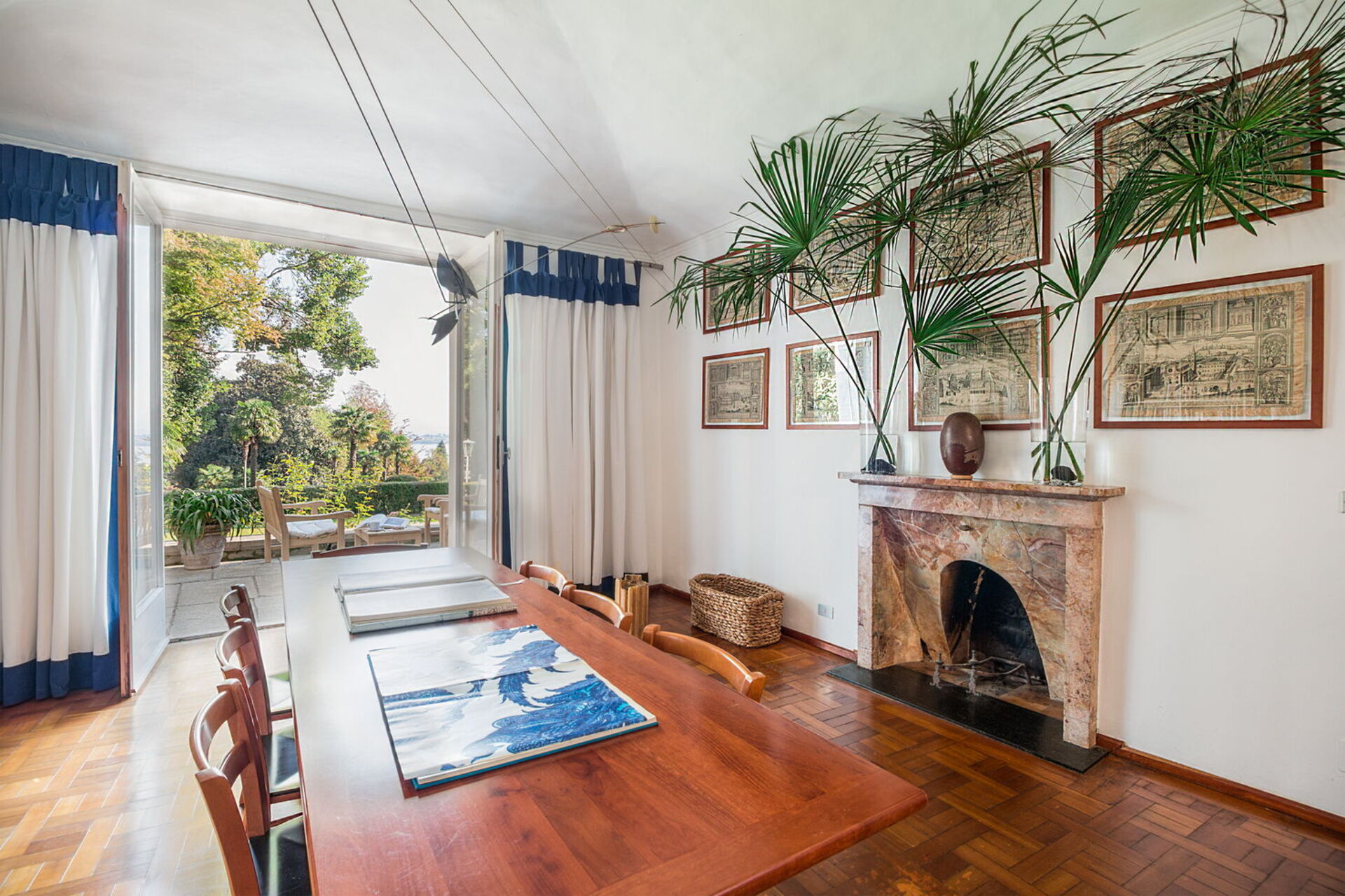 You will stay at Villa Romantica, a beautiful vacation rental located in the lakeshore village of Baveno, Italy, offering splendid views of the famous Lago Maggiore's Borromeo Golf. This historic property was built in the 17th century on an ancient monastery and features a unique 17th-century Andalusian patio. The villa accommodates up to 16 guests across the Main Villa sleeping 12 people and the Guesthouse accommodating 4 people, totaling 760 square meters for the Main Villa and 160 square meters for the 2 dependences. You will enjoy a magnificent terraced garden spanning 1.5 hectares, designed in the twenties by Maurice Blondel, complete with a water garden, rose garden, and arboretum. The property offers a private swimming pool measuring 16 x 4 x 1.40 meters, spacious yard areas, internet wifi coverage throughout the house and courtyard, and private parking facilities. Set just an hour's drive from Milan and within walking distance to shops and the main boulevard along Baveno's lake promenade, this in-town property combines historic charm with modern comfort. All living areas feature spacious rooms with high ceilings and large panoramic windows, furnished with a mix of modern design and antiques that have belonged to the owner's family for hundreds of years. Please note that Villa Romantica is not suitable for people with walking difficulties, and the local train passes 250 meters from the property downhill, separated by other properties, trees, and bushes.