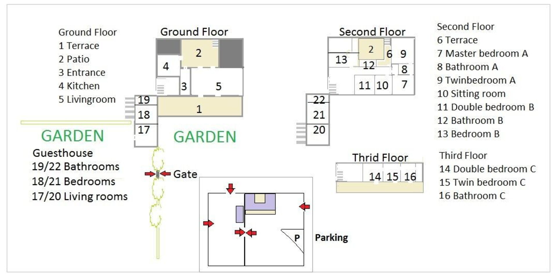 - Resident Staff: one staff member lives at the property and works 8 hr. a day / 6 days per week. Mandatory day off to be agreed in advance.
