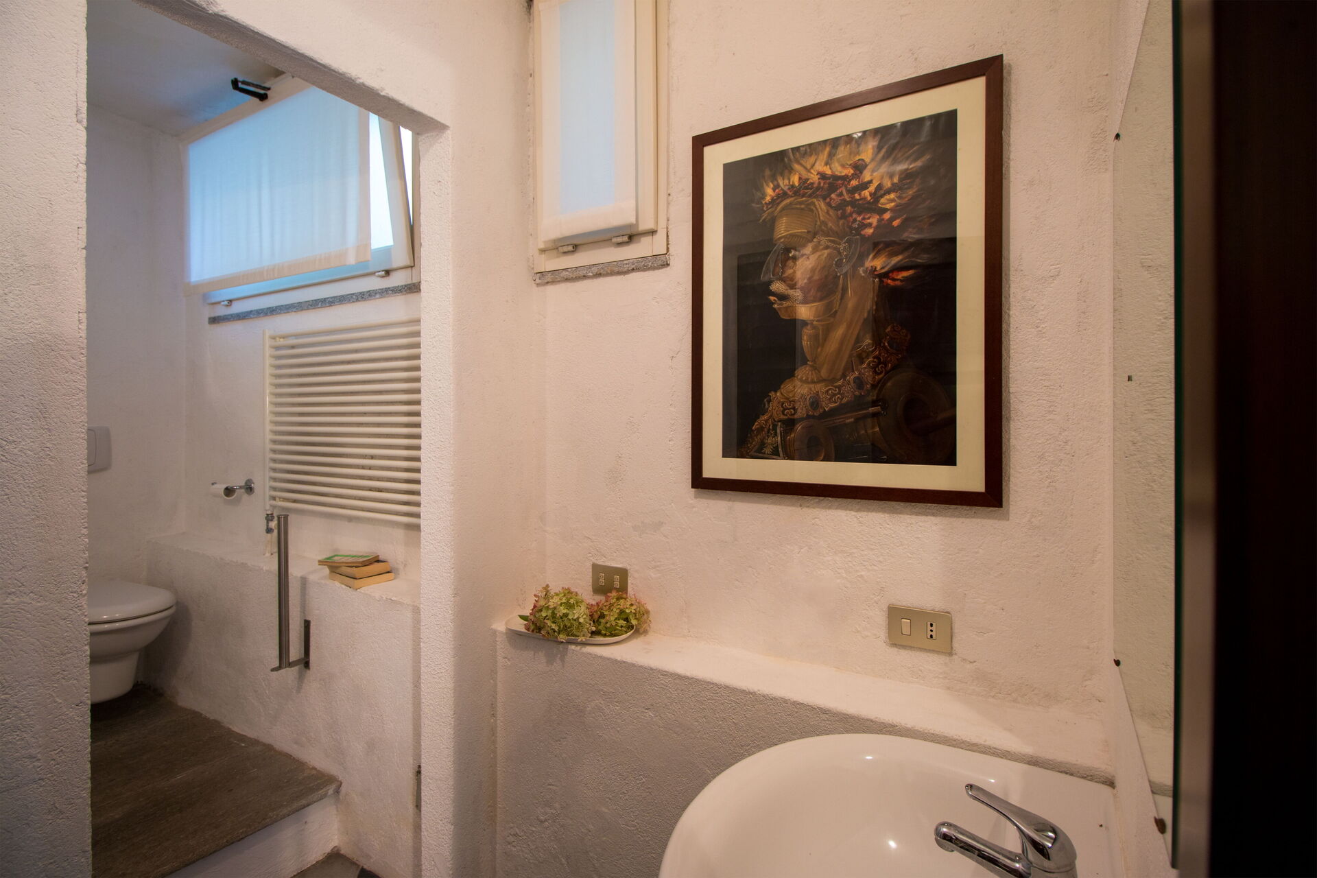The property offers wifi coverage throughout the Main Villa, both dependences, and the courtyard area, ensuring you remain connected during your stay. Private parking facilities are available on the property grounds for your convenience. Please be aware that the local train line runs 250 meters from the villa, positioned downhill and separated by other properties, trees, and bushes, which may produce some background noise. The property is not suitable for guests with walking difficulties due to its terraced garden layout and architectural features. The villa's historic nature and antique furnishings reflect centuries of family ownership, creating an authentic atmosphere throughout your stay.