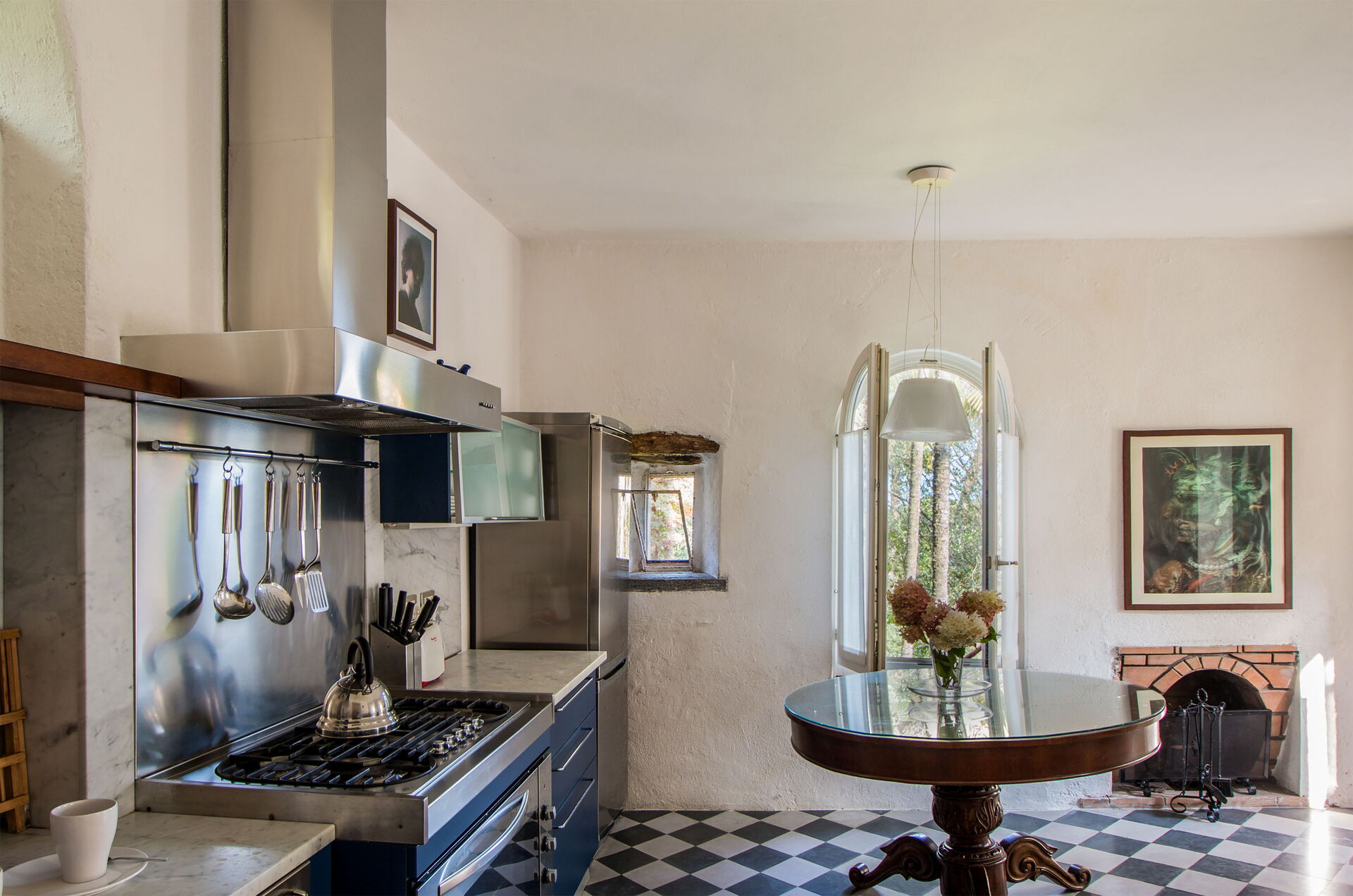 The total property comprises 760 square meters for the house villa and dependence, with each dependence measuring 80 square meters for a total of 160 square meters, and a garden of 1.5 hectares. Please be advised that a local train passes 250 meters from the property, downhill and separated by other properties, trees, and bushes. The interiors are bright and nicely furnished. The very nice and well-behaved caretaker lives on the top floor of the property in a separated unit with an independent entrance. The Main Villa and the Guesthouse cannot be rented by different groups, as the guesthouse will be rented only together with the main villa. Occasionally the very discreet owner and his wife will use one of the units, and in this case a small part of the garden in front of the guesthouse will not be accessible. Please note that the staff has access to the laundry on the ground floor.