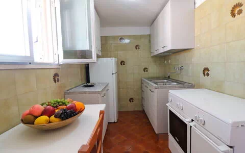 Kitchen + living room: well equipped kitchen, dining table (people: 8), fridge, freezer, stove top, sofa bed double, WIFI internet, air conditioning, television, exit to the balcony.