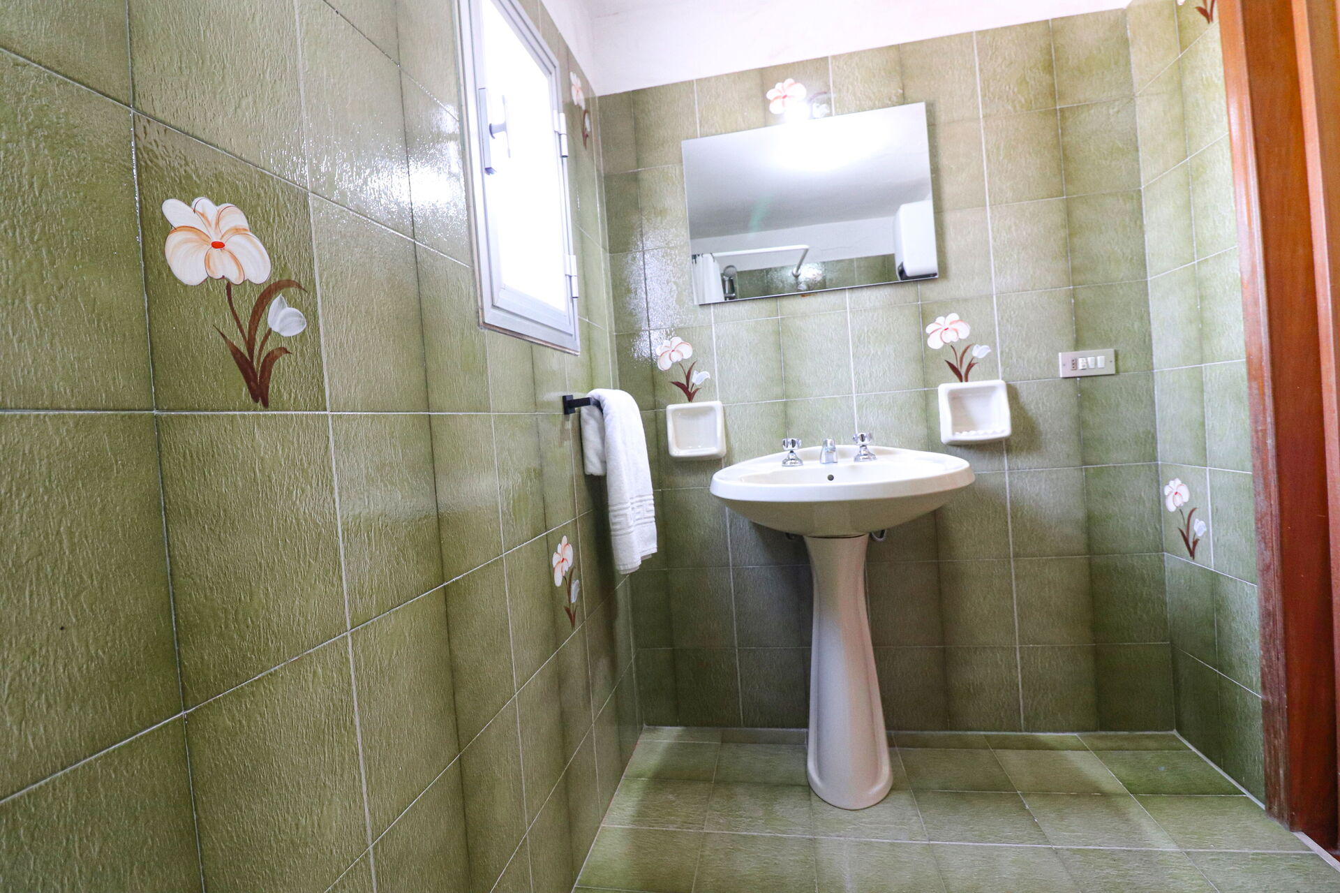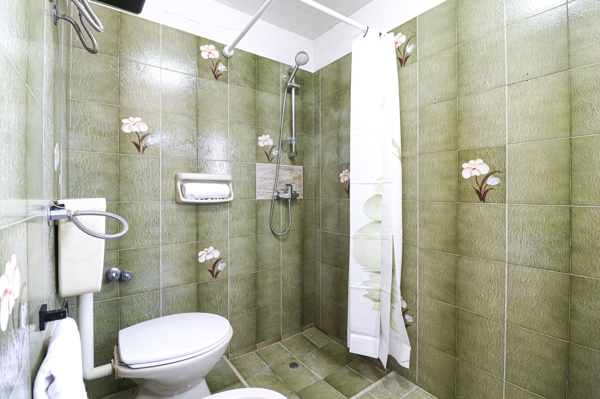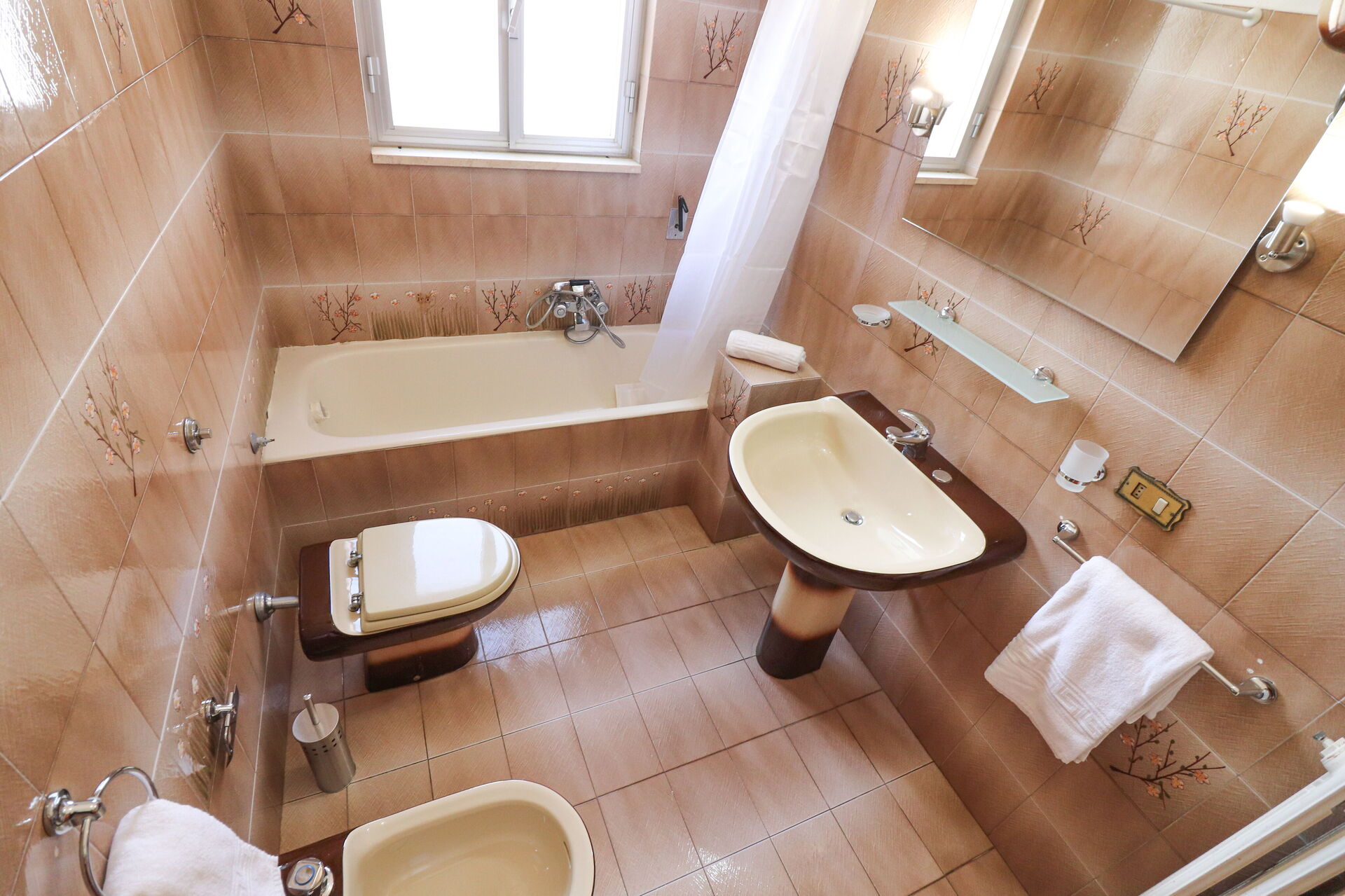 Bathroom: basin, toilet, bidet, shower, hairdryer.