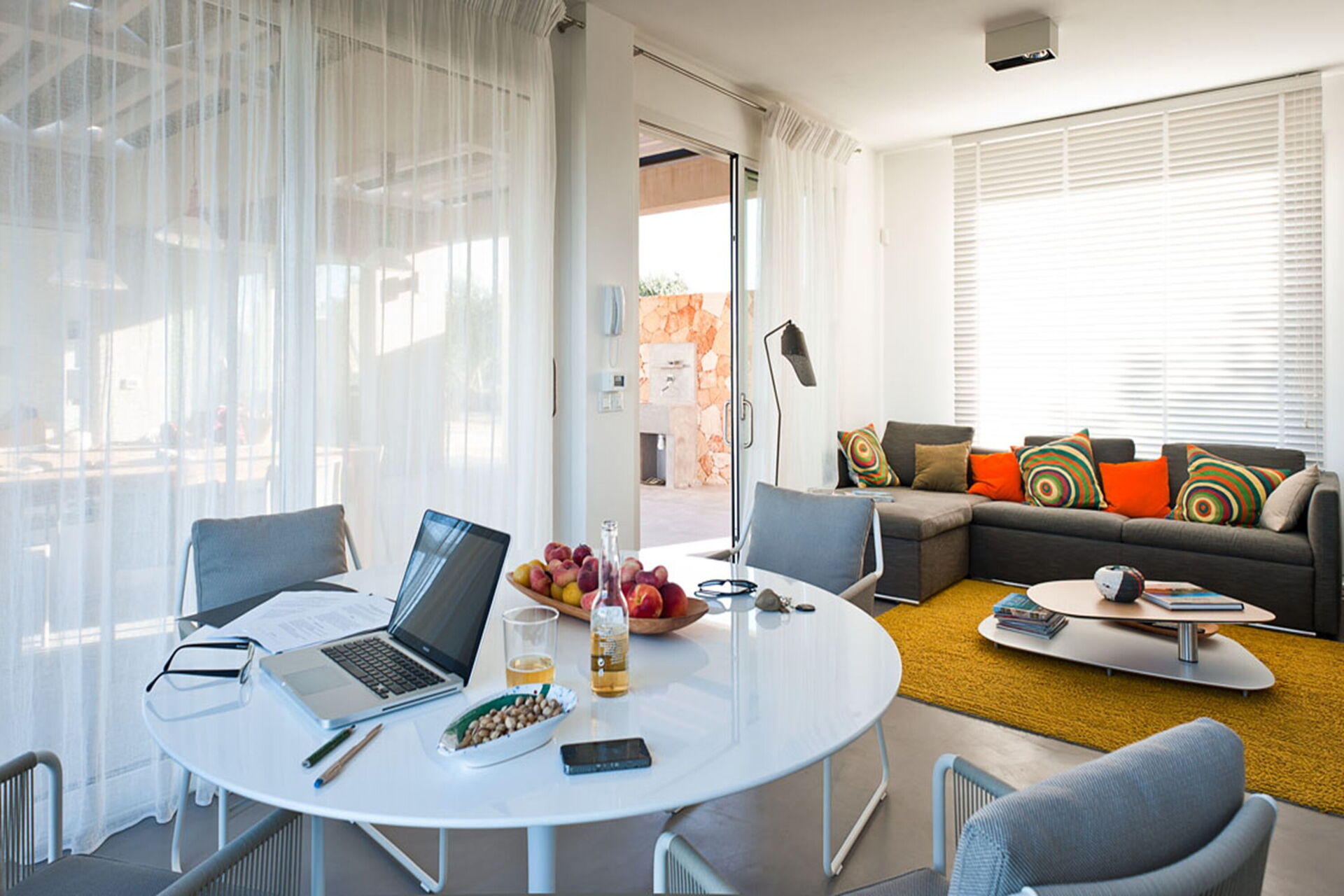 Living room: dining table (people: 4), sofa bed double, WIFI internet, television.