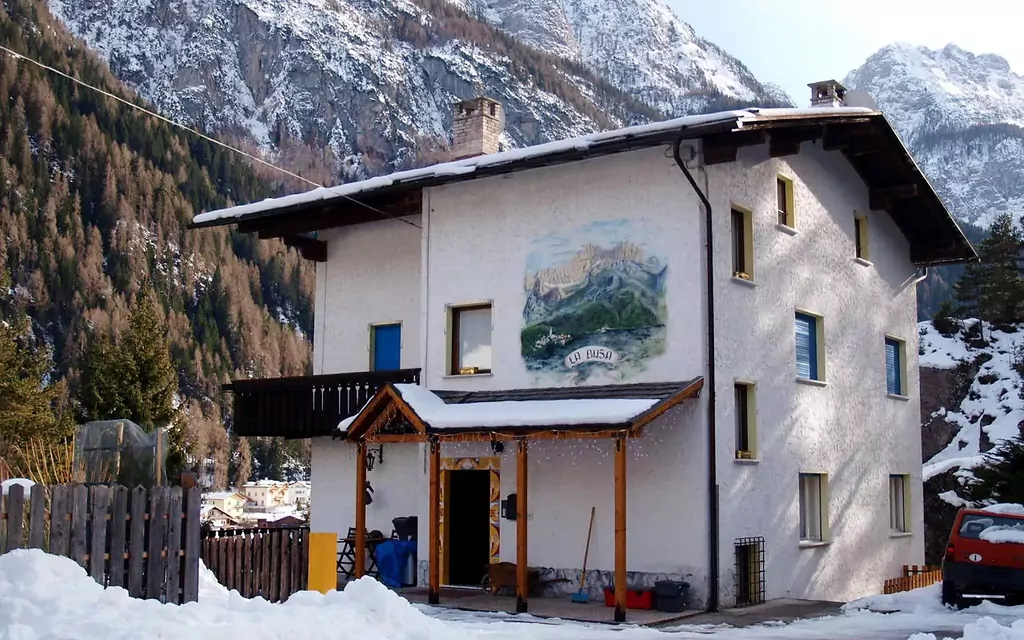 The 3-story detached "La Busa" apartment house is located in a quiet and sunny position on a slope in the residential district of Masare', just 400m from its center and 2km from Alleghe center in Italy. It offers a rustic and simple setting with shared amenities like a garden, garden furniture, barbecue, and storage room for skis. The property has 4 apartments and ample parking facilities at the premises. Nearby, you'll find grocery stores, restaurants, a bus stop within 400m, and a vacation rental with a yard, internet WiFi, parking, tennis court, and installment plan options.