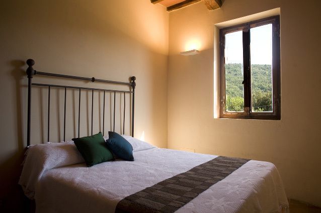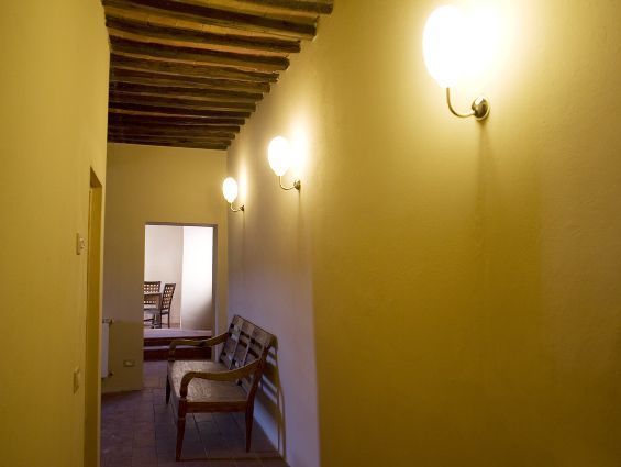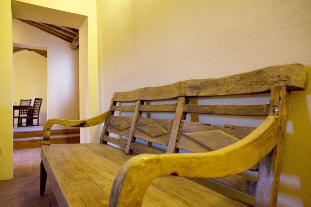 Located on the ground floor it has an independent entrance through a small patio, a kitchen and dining area inside a reconverted old wood oven, the living area and two double rooms. The kitchen has a gas cooker, fridge and microwave, oven and washing machine. The bedrooms have a nice view on the cultivated fields. Bathroom with shower, stone basin and wooden/glass elements. Central heating.