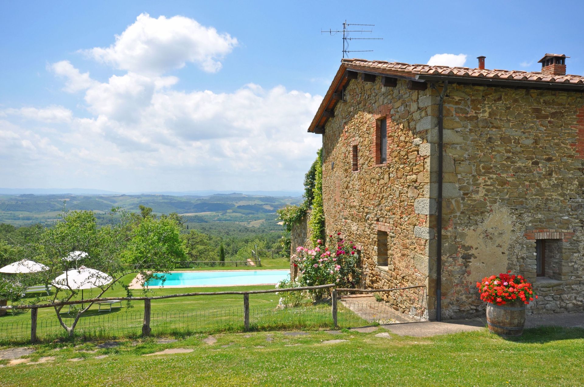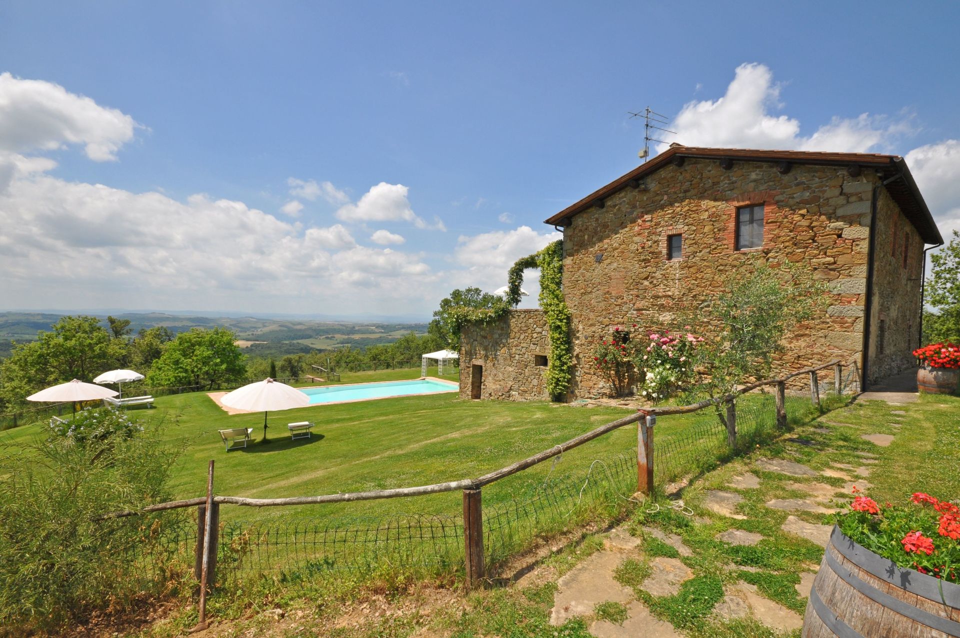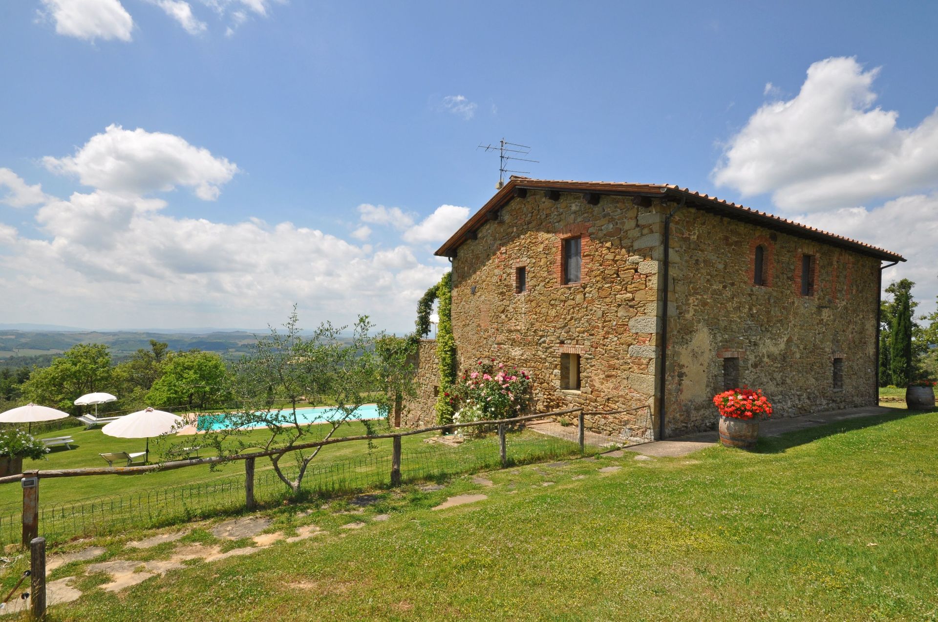 Das Haus und die Anlage entsprechen genau den Angaben im Internet. Es ist sehr abgelegen und ruhig. Vom Pool aus hat man einen guten Ausblick auf die toskanischen Hügel. Die Ausstattung ist rustikal, alles Nötige (bis auf eine Kaffeemaschine) ist vorhanden. Die Eigentümer sind sehr bemüht und nett, sprechen allerdings nur italienisch. Einmal wöchentlich veranstalten sie für ihre Gäste einen toskanischen Abend. Wir können das Haus nur weiterempfehlen.
