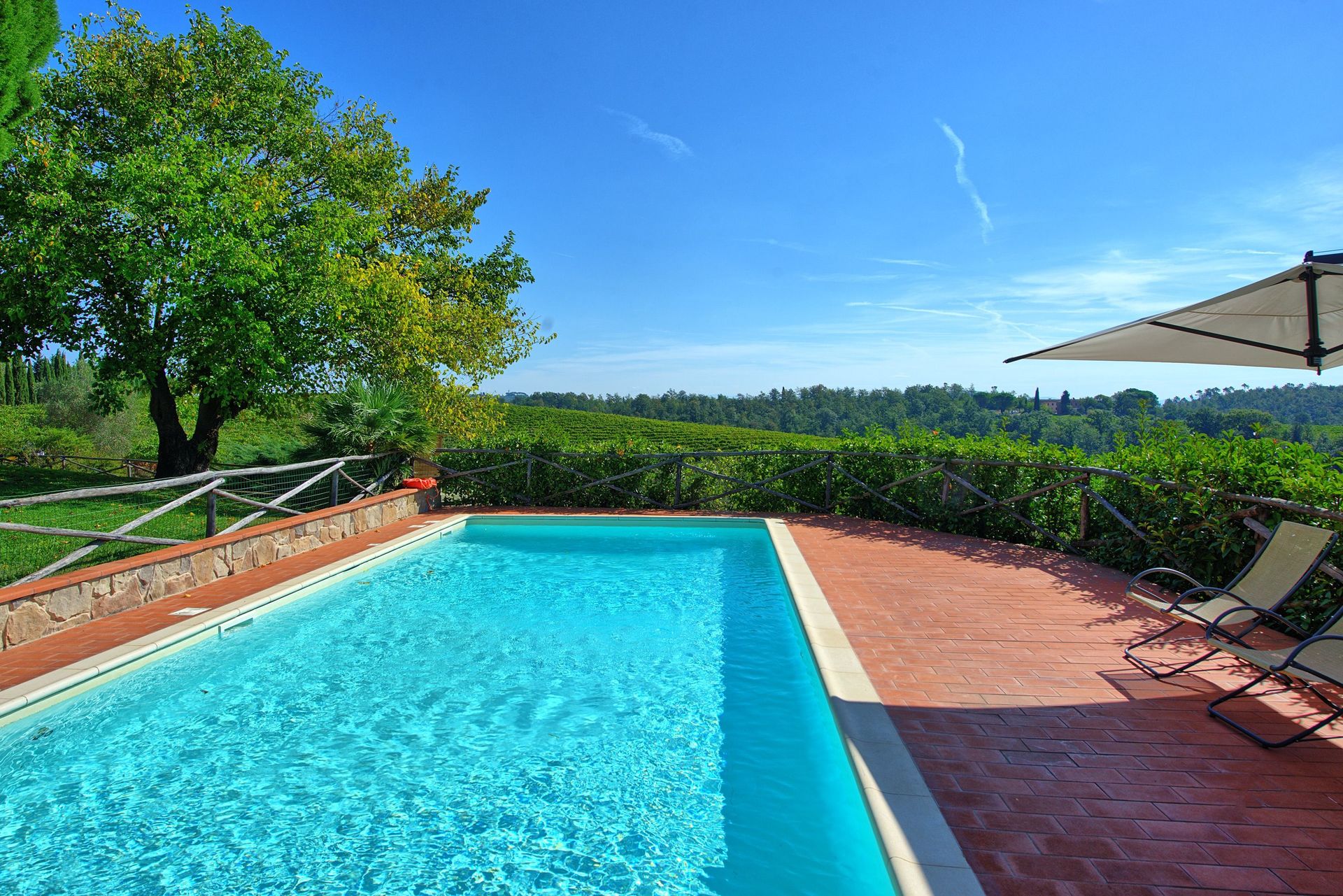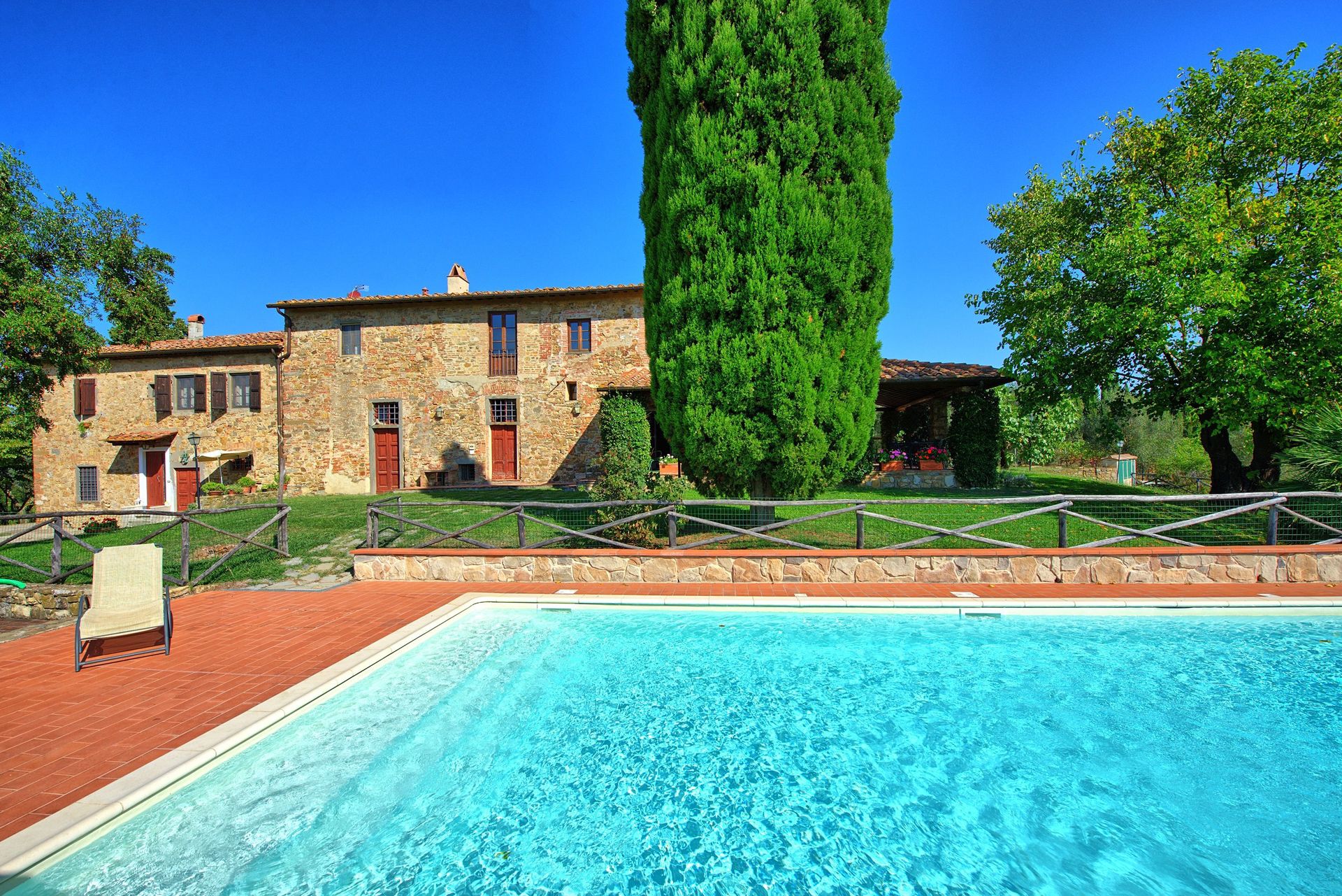 Big independent farmhouse with private swimming-pool created by the restoration of an ancient oil mill situated approx. 18 km from Florence away. This property nestling deep among vineyards and olive groves is very large and offer nicely furnished rustic interiors. The villa is part of a farming estate producing wine and olive oil and offering an ideal terrain for beautiful walks in close contact with the Tuscan landscape.
