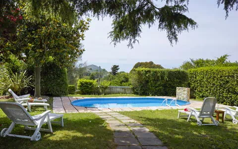 Enjoy your stay at the comfortable villa "Sunny home" in Itri, Italy, surrounded by trees and a well-kept garden. The property boasts a 2,500 m2 fenced area, a 1,200 m2 fenced park, and a beautiful garden with a wildlife area and flowers. Relax by the kidney-shaped swimming pool (8 x 4 m, depth 150 - 150 cm, available seasonally from June 1 to September 30), or take advantage of the outdoor shower, garden furniture, barbecue, and barbecue house. Inside, you'll find a washing machine, and ample parking is available on the premises for up to 3 cars. This vacation rental offers a convenient location just 5 km from the center of Itri and provides Internet WiFi access.