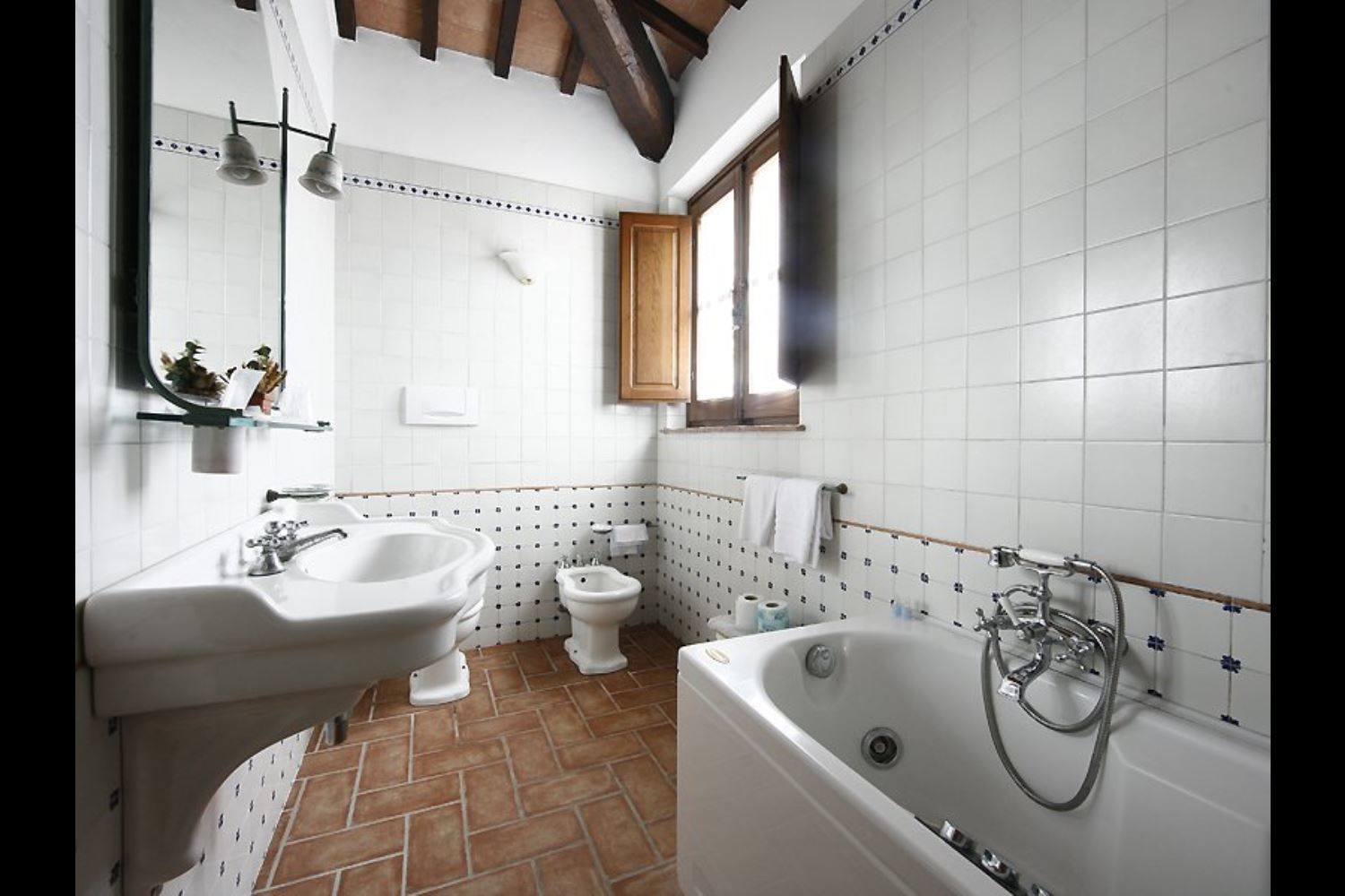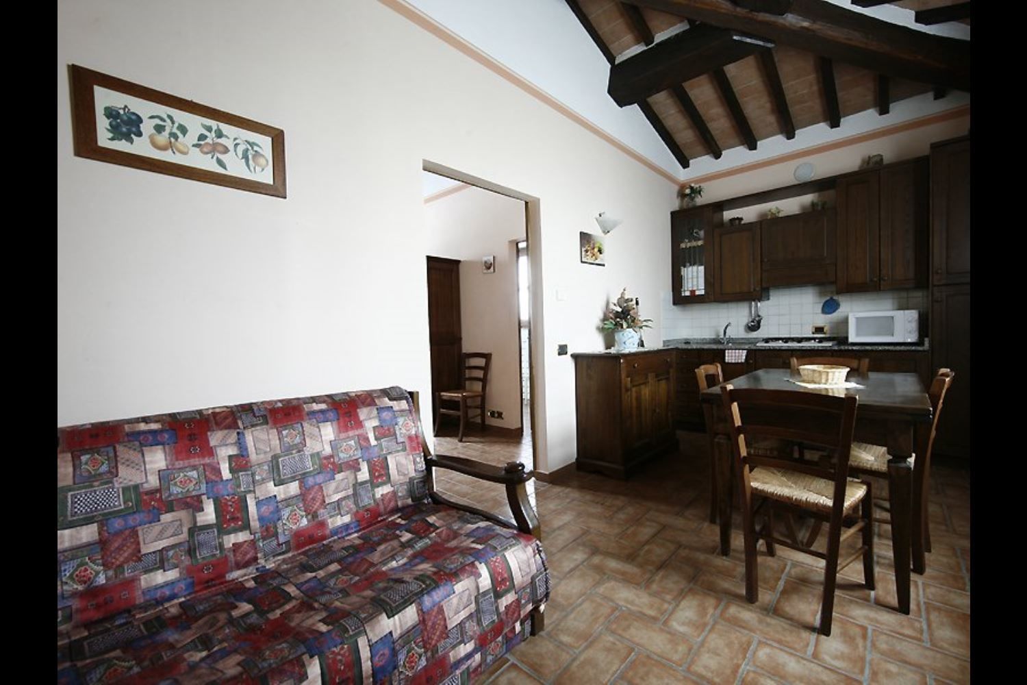 First floor apartment comprising sitting/dining room with kitchenette and single sofa bed, double bedroom, bathroom with Jacuzzi bath.