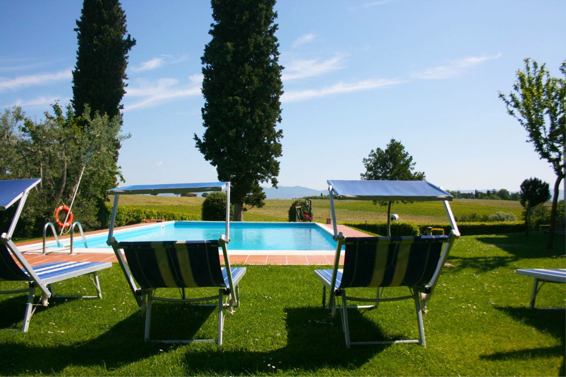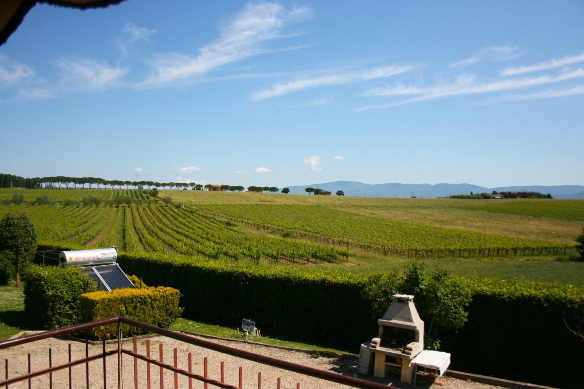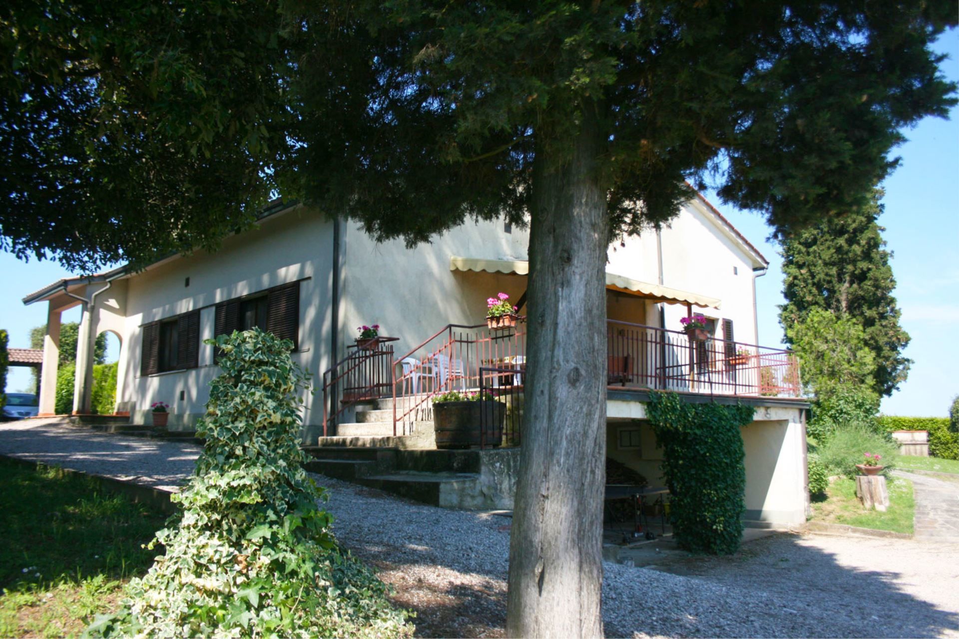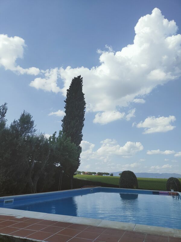 You will find Villa Il Cedro nestled in the hills covered with vineyards and olive groves that mark the natural border between the two most beautiful regions of central Italy, Tuscany and Umbria. The house is situated in a panoramic position. From the garden, on clear days, you will enjoy a beautiful view of Lake Trasimeno and the mountains of Cortona, and the towns of Castiglione del Lago 12 km, Montepulciano 15 km, and Cortona 18 km are easily accessible for day trips, for an evening out to dinner or for an aperitif. These towns have ancient origins and with their historic buildings, churches and stone-paved streets, they will welcome you in an atmosphere of times gone by.