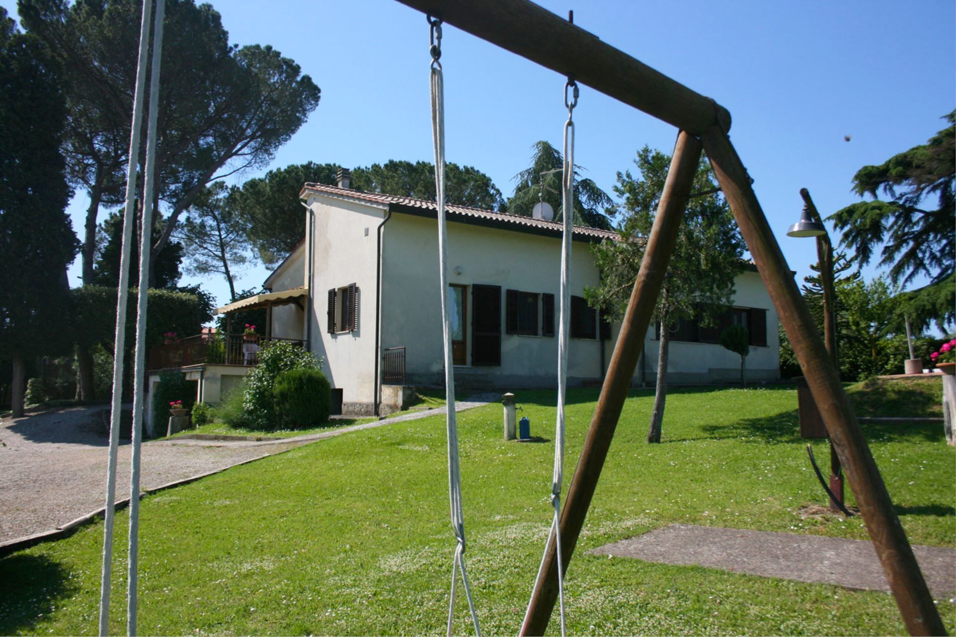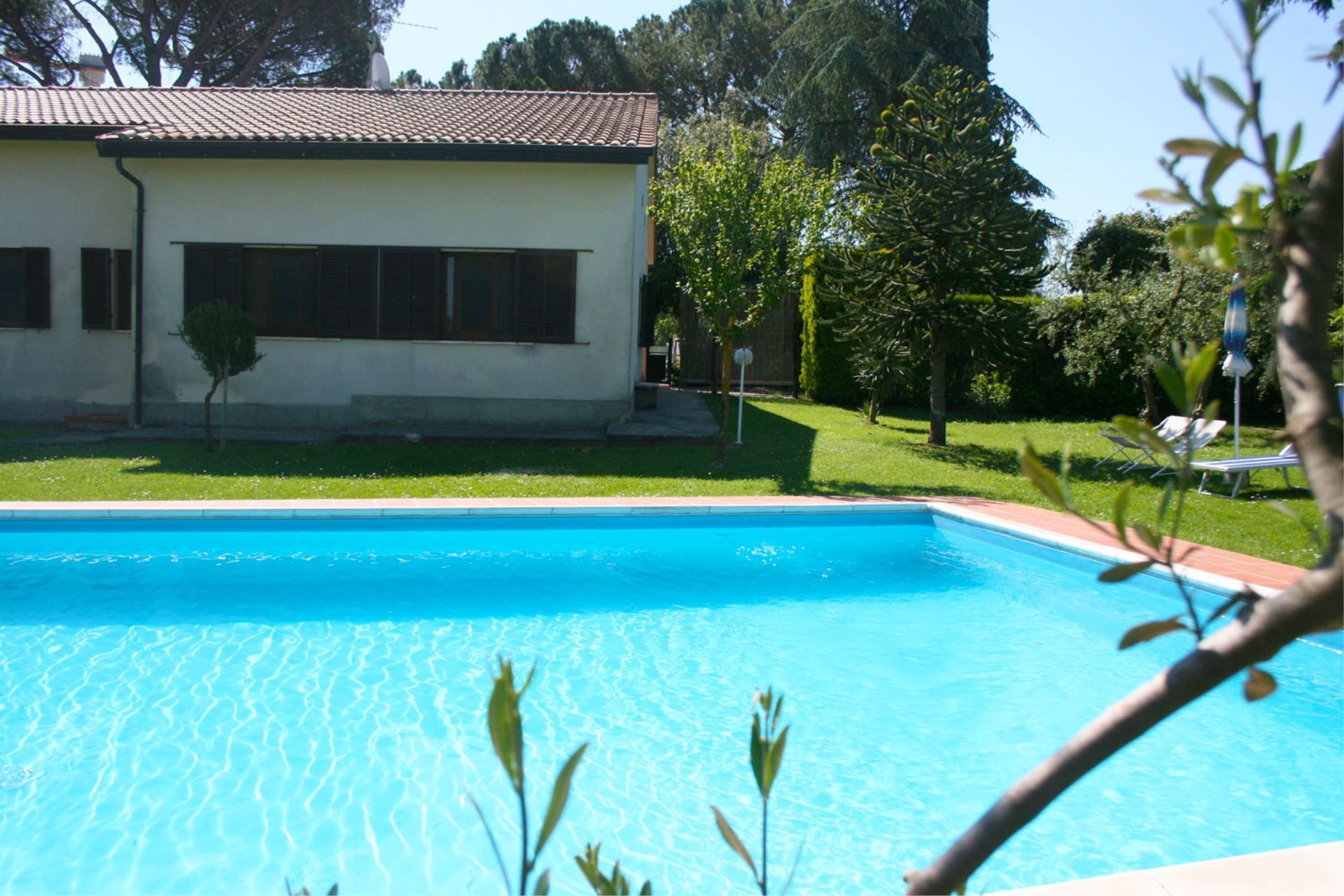 One of the villa's strong points is undoubtedly its green enclosed park, composed of pines, cypresses, firs and a centuries-old cedar, a peaceful refuge for your four-legged friends and a safe place for your children to play. In the garden you will have at your disposal a barbecue, a table tennis, swings for the children, and a beautiful swimming pool (size 6x12 m, depth 1.60 m) equipped with sunbeds, deckchairs and beach umbrellas, perfect for escaping the summer heat and for an aperitif by the pool.