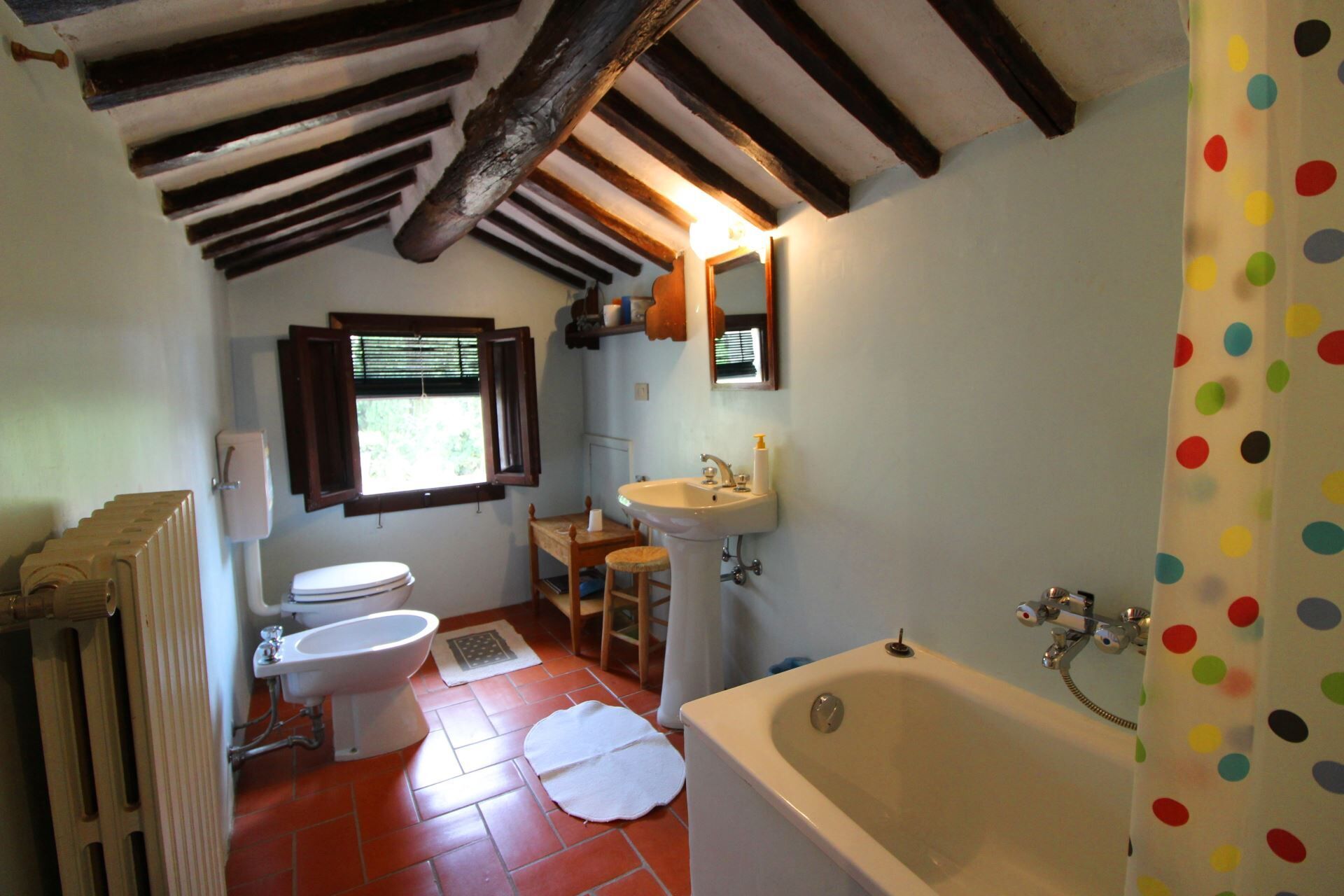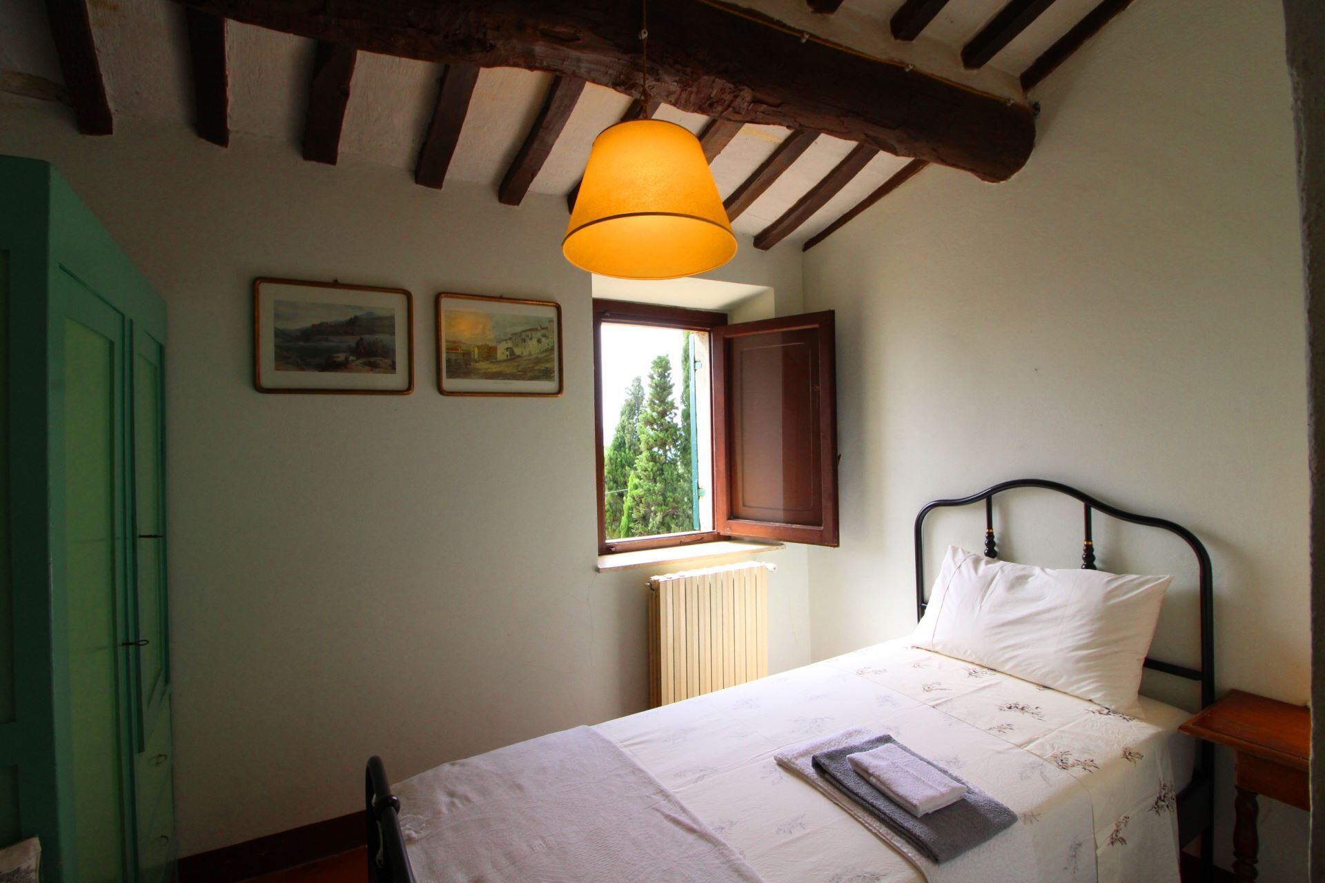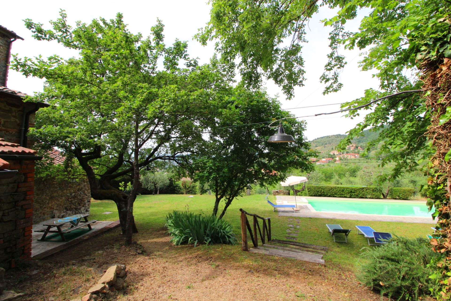 The beautiful panoramic swimming pool (size 5x10 m, depth 0.90-1.80 m - open from 10 May to 30th September) was built on a large green terrace, just a few metres from the house. In the completely enclosed garden, your children can play freely in absolute tranquillity in the shade of the olive trees and century-old trees, while you, by the side of the pool, can enjoy the sun while admiring the fantastic panorama of the valley below. For the little ones' playtime there is also a playhouse in a tree.