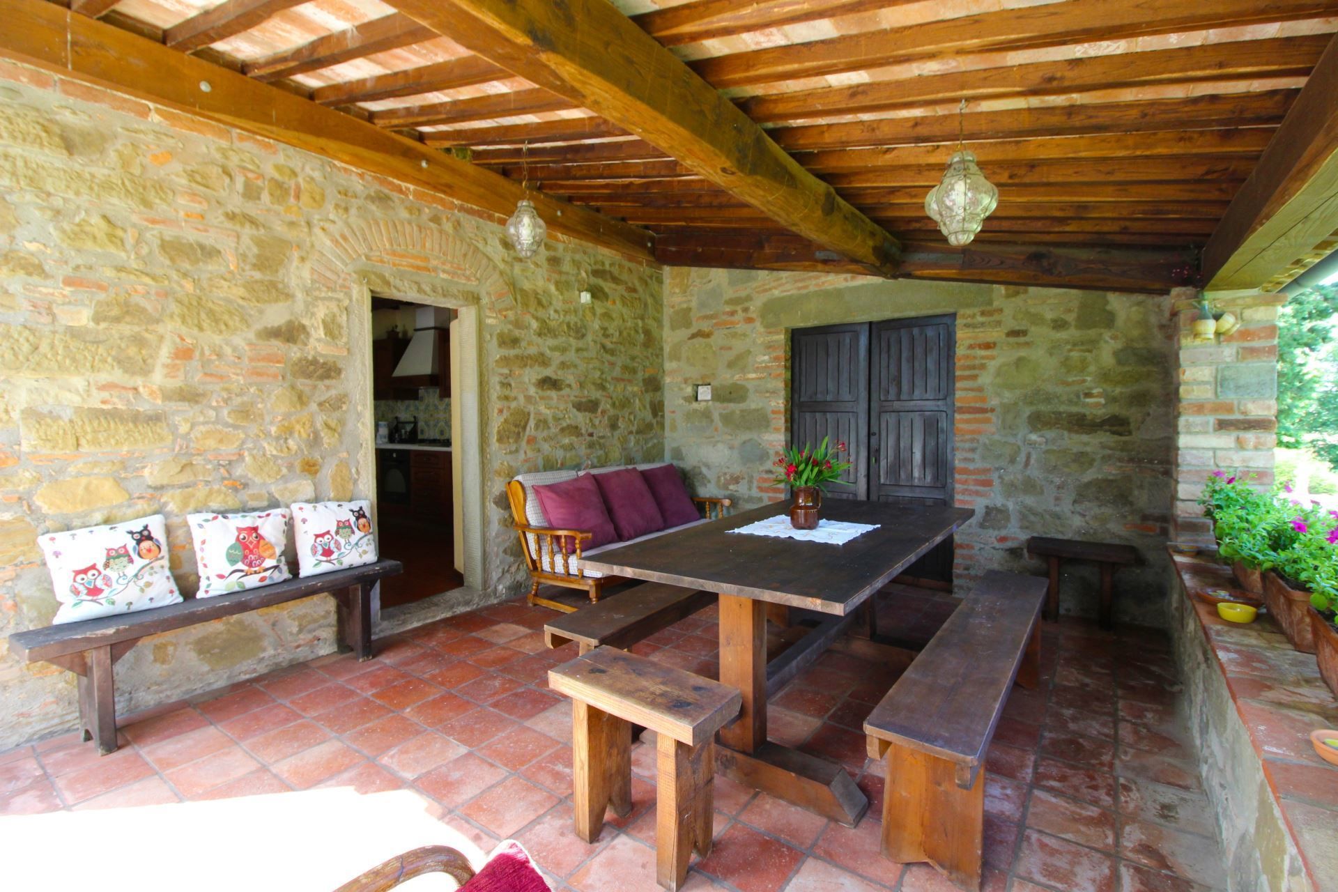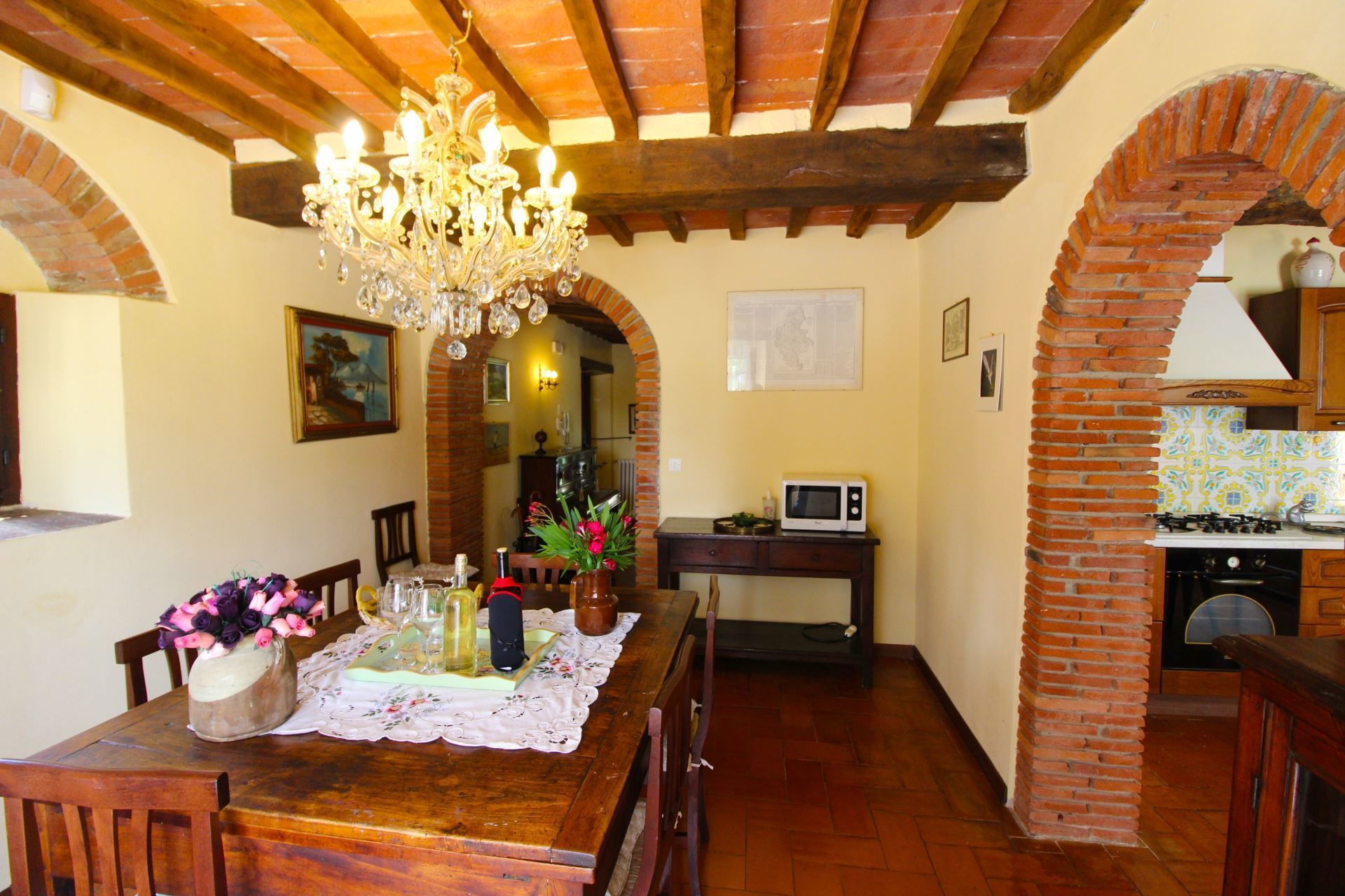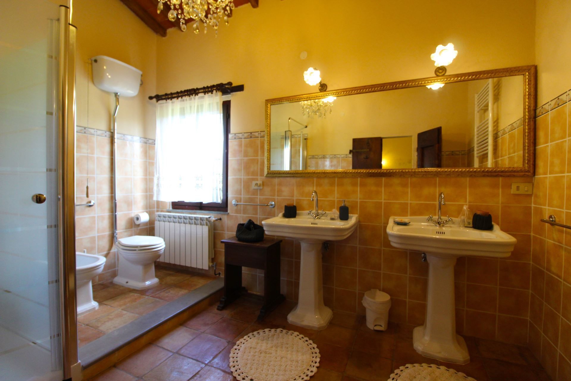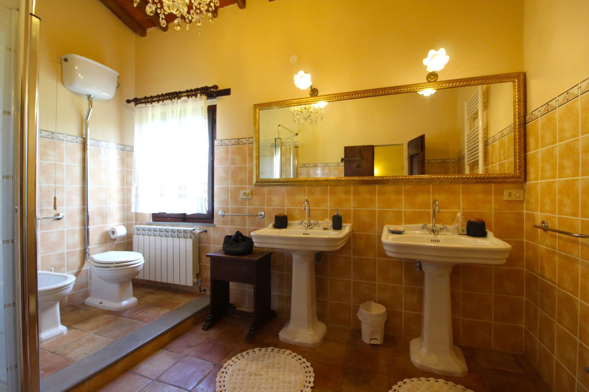 The farmhouse has been recently and carefully restored under the careful guidance of the owners, who strongly wished to maintain its ancient origins and characteristics. The original terracotta tiled floors, the high ceilings with wooden beams, all coordinated with quality furnishings, with fine antiques, are a perfect match for the characteristics of the villa. You will feel a sense of warmth at the villa, you will feel welcomed and pampered, perfectly in harmony with your surroundings.
