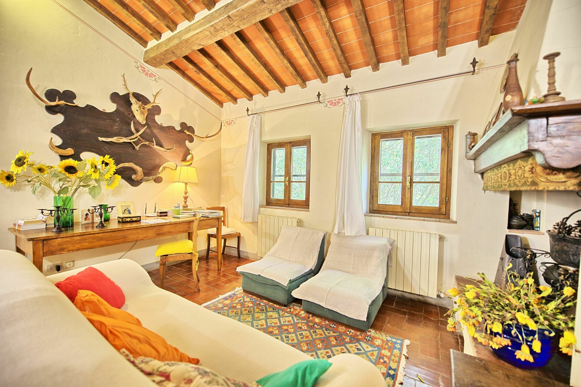 Located in the centre of Cortona, this apartment in housed in a nice stone building on a quiet paved street. Spacious, with high ceilings, but still cosy, the minimalist interiors boast terracotta floors, exposed ceiling beams and stone features walls, elegant pieces of furniture (both modern and vintage), and tasteful touches added to finish the property to such a high standard.