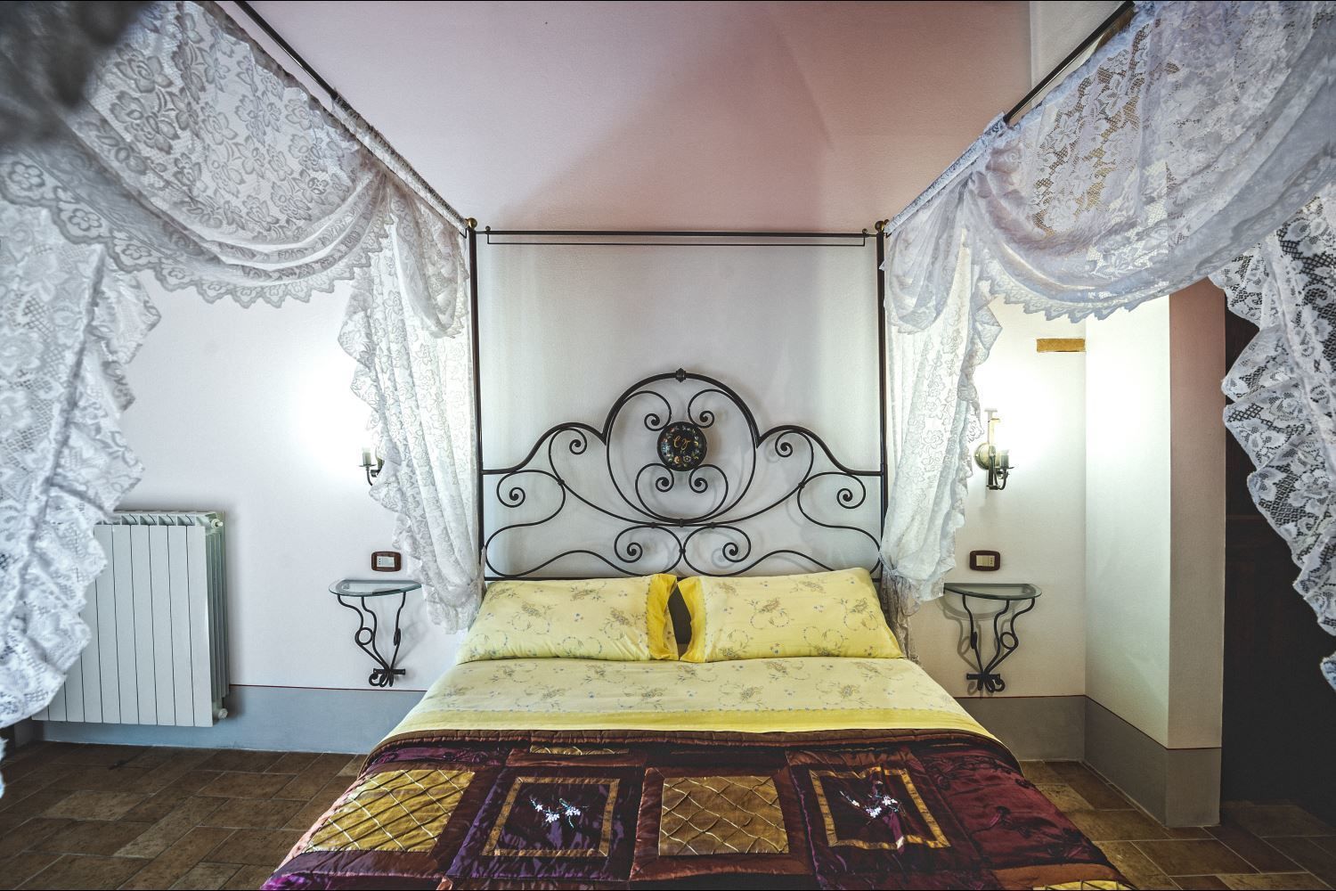 Ground floor apartment in the house Granaio, with entrance through small private porch and composed of living-dining room with kitchen corner and double sofa bed, two double bedrooms both with en-suite bathroom with shower, one suite with French window overlooking the porch, double bedroom with canopy bed and fireplace, private bathroom with shower and a two seats Jacuzzi with chromotherapy. Private gazebo in the garden equipped with table and chairs to eat in the open.