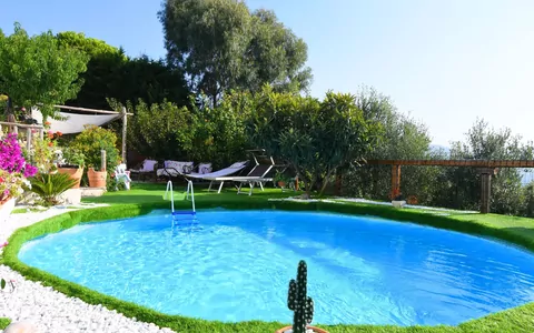 Experience a cozy and rustic vacation rental in the charming Sant'Agata sui 2 Golfi, just 9 km from Sorrento. "Fontanarosa" is a 2-family house surrounded by trees, offering two apartments and a range of amenities. Indulge in the private swimming pool (5m diameter, seasonal availability), a terraced garden with flowers and trees, a patio with garden furniture, and internet WiFi. Parking is available on the premises.
