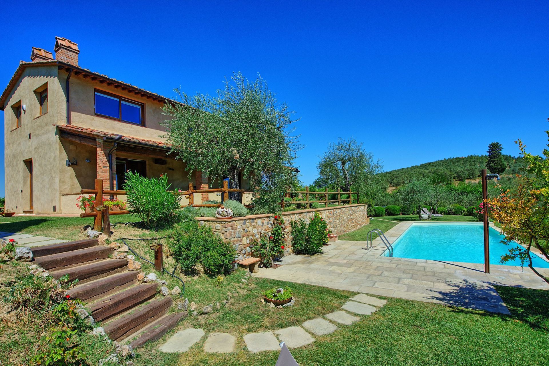 Distances: Certaldo with general stores and railway station 7 km away, San Gimignano 19 km away, Florence (airport) 40 km away, Volterra 40 km, Siena 50 km away, Lucca and Pisa (airport) approx. 70 km away.