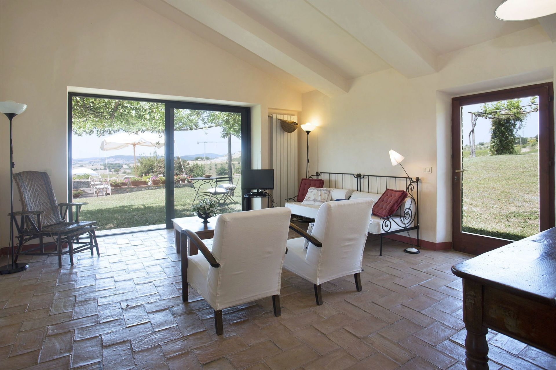 The panoramic position offers the most spectacular views on the sea and on the Tuscan Archipelago, with the Giglio island just in front of the lovely equipped terrace, a few steps from the swimming pool, providing a unique scenery where to enjoy magical sunsets. The accommodation is split in two buildings which have been restored retaining the original character. The house, reachable through a 2,6 km unmade road, is surrounded by a typical Mediterranean garden, with olive trees, rosemary and lavender plants, and a wild, natural vegetation all around, wonderful for walking and exploring.