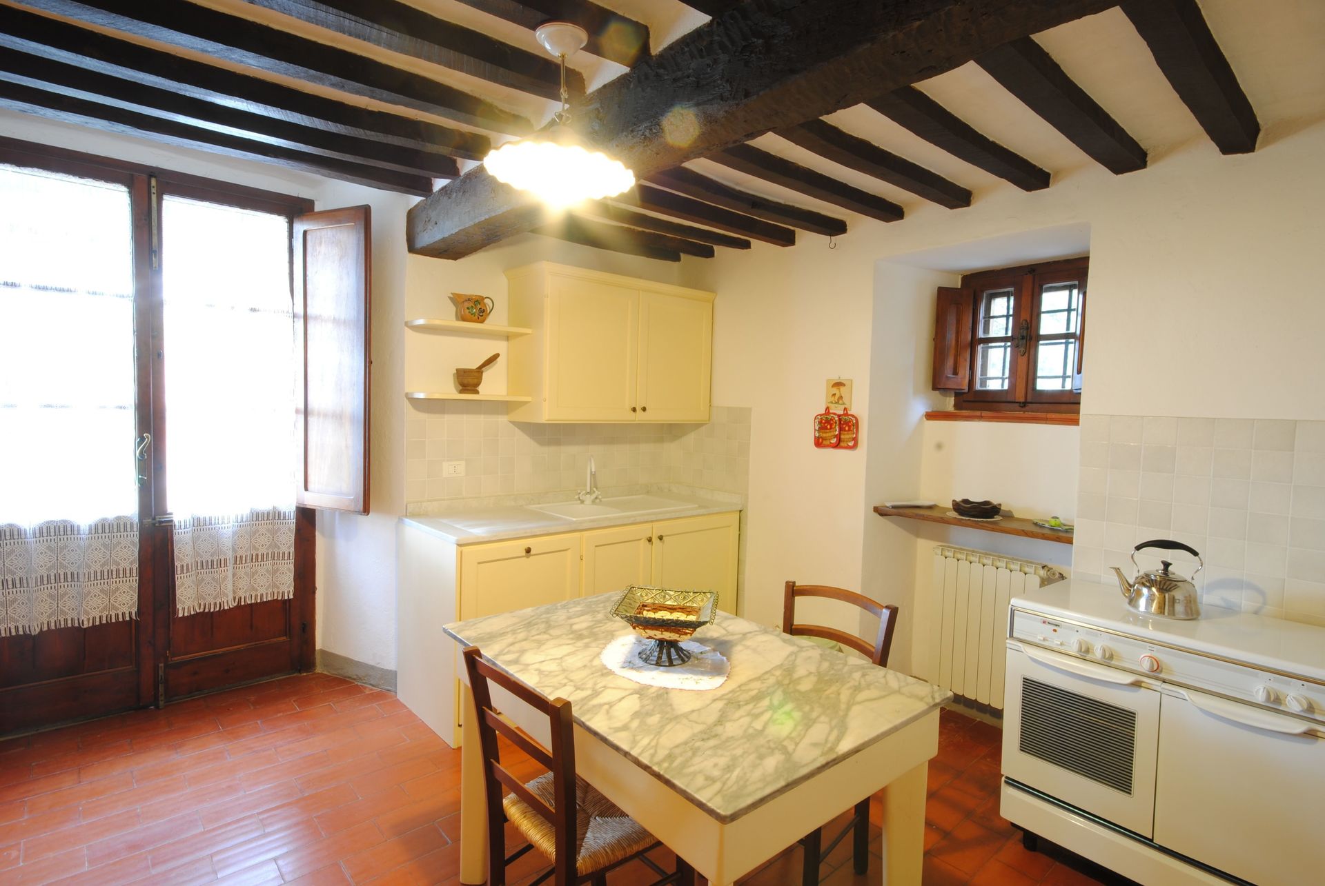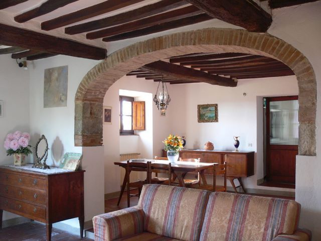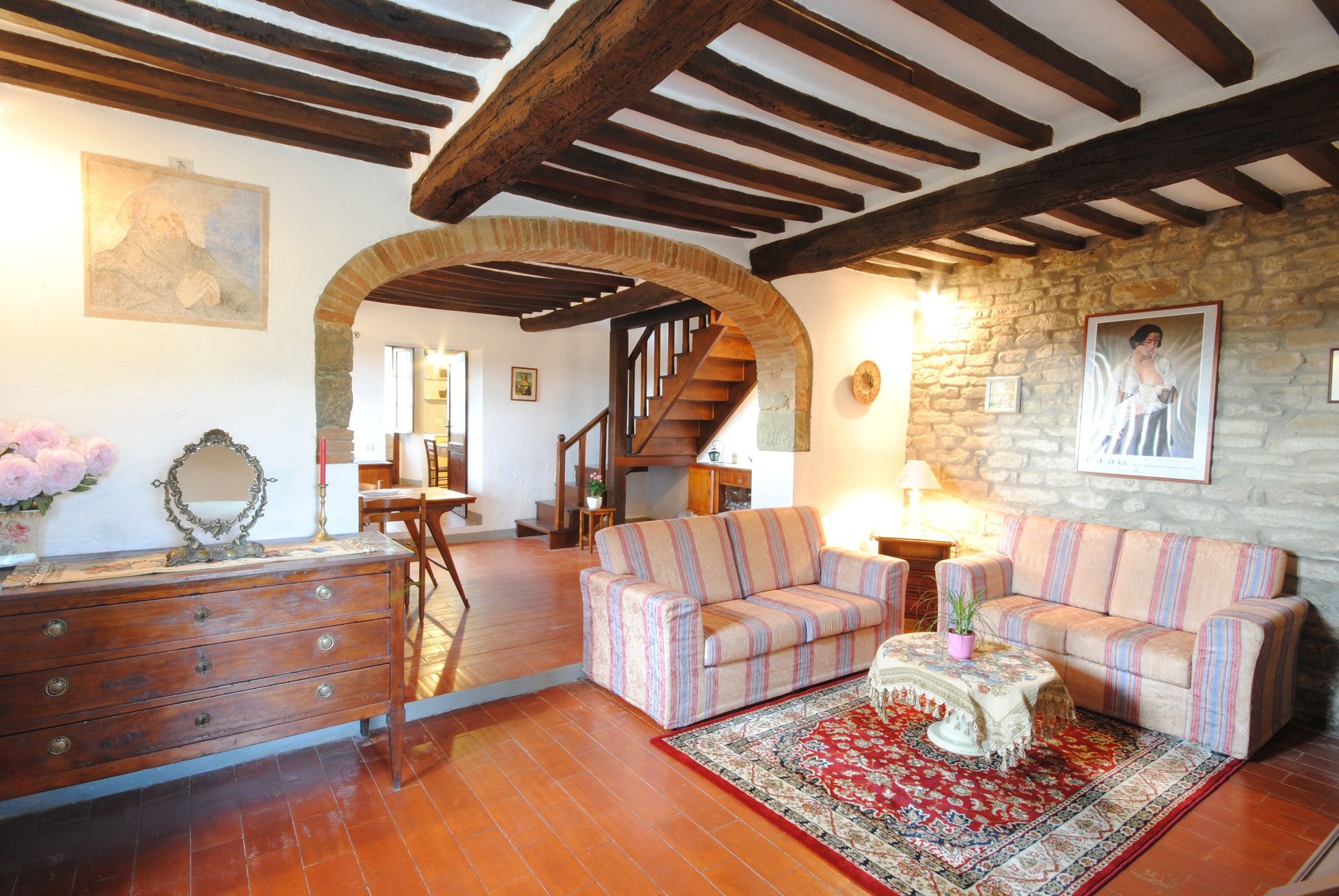 Located in the centre of Cortona, this apartment in housed in a nice stone building on a quiet paved street. Spacious, with high ceilings, but still cosy, the minimalist interiors boast terracotta floors, exposed ceiling beams and stone features walls, elegant pieces of furniture (both modern and vintage), and tasteful touches added to finish the property to such a high standard.
