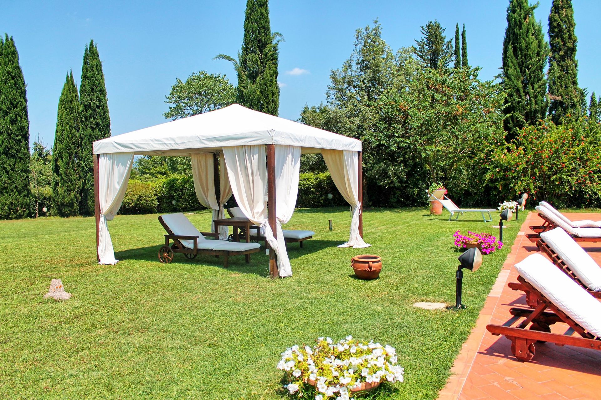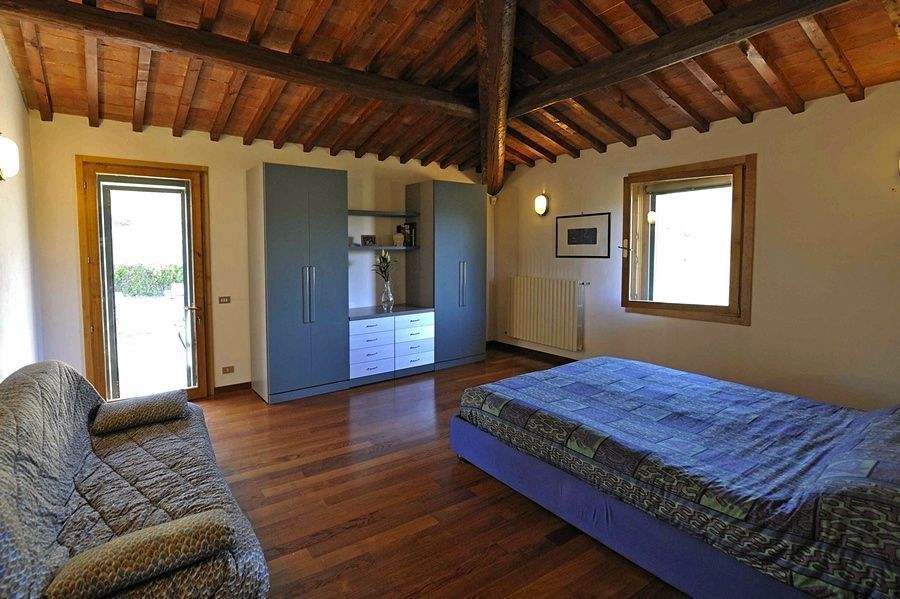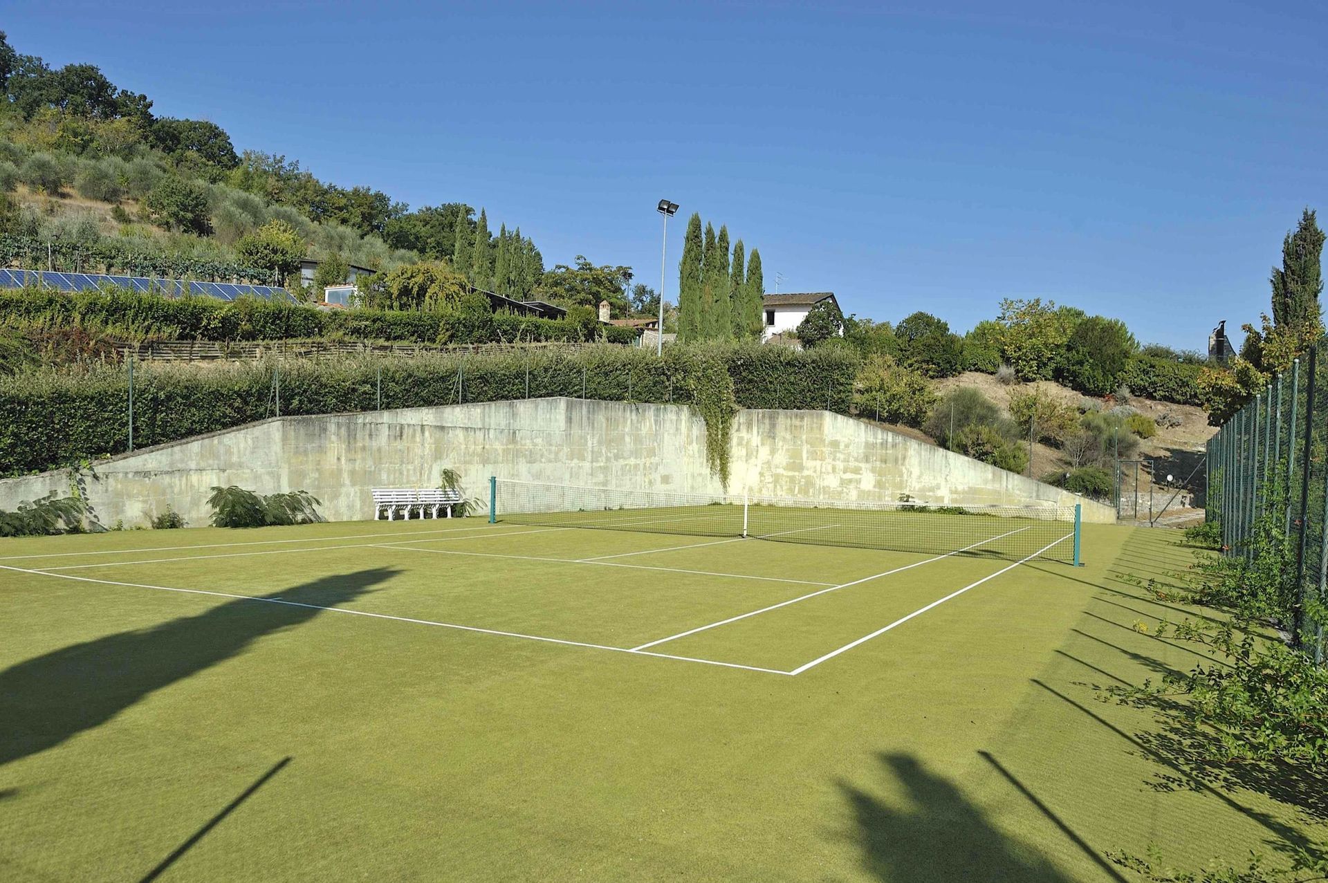 At guests’ disposal: large, well-kept garden with gazebo, sun-beds, sun-umbrellas, swing for children, private swimming-pool (18 x 8 m – min. depth 1,3 m – max. depth 2,5 m – open from 01/05 through 30/09) with small adjacent whirlpool (also suitable as a pool for children; not heated), changing room with showers and toilet, private tennis court (rackets and balls are provided). Guests can also enjoy use of a restored former barn providing kitchen, bread oven, barbecue and dining area ideal for al-fresco dining. WI-FI internet connection is available in the villa (free of charge). Laundry with washing-machine and ironing facilities.