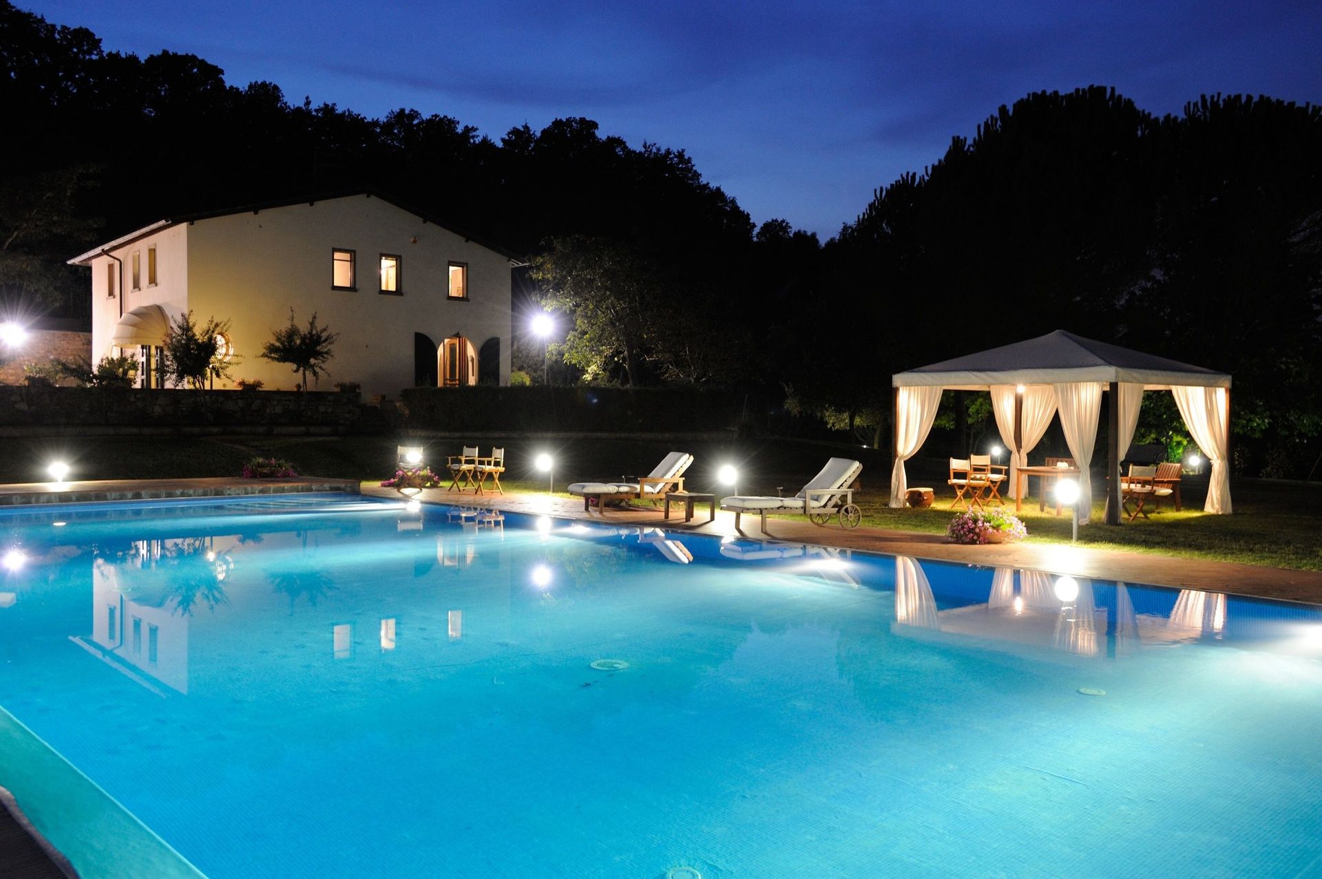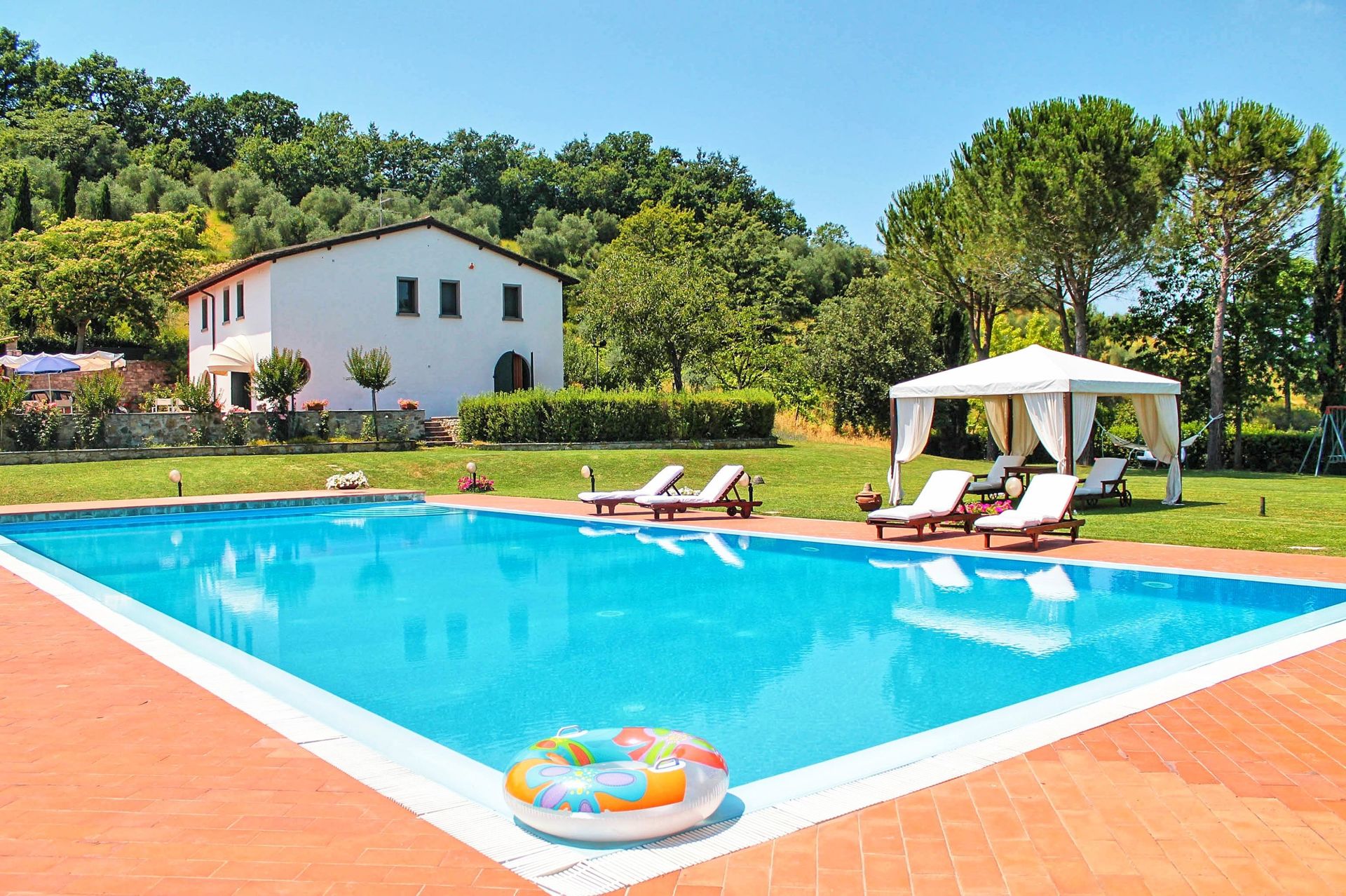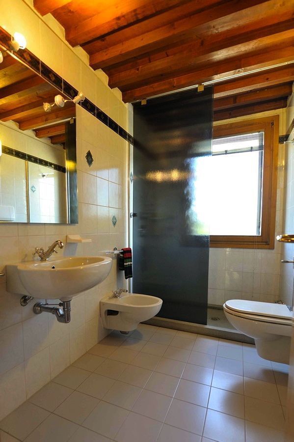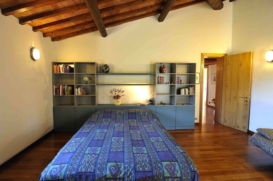 At guests’ disposal: large, well-kept garden with gazebo, sun-beds, sun-umbrellas, swing for children, private swimming-pool (18 x 8 m – min. depth 1,3 m – max. depth 2,5 m – open from 01/05 through 30/09) with small adjacent whirlpool (also suitable as a pool for children; not heated), changing room with showers and toilet, private tennis court (rackets and balls are provided). Guests can also enjoy use of a restored former barn providing kitchen, bread oven, barbecue and dining area ideal for al-fresco dining. WI-FI internet connection is available in the villa (free of charge). Laundry with washing-machine and ironing facilities.
