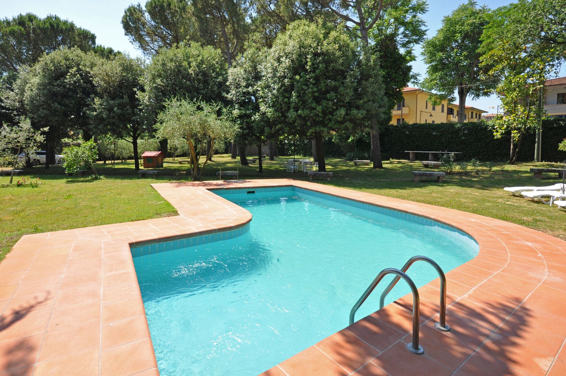 At guests’ disposal: large garden with irregular-shaped swimming-pool (circa 60 square meters – min. depth 1,2 m – max. depth 1,8 m – open from 01/05 through 30/09), large terracotta-tiled solarium, barbecue and bread oven. Within the property there are various fruit trees which are at guests' disposal.
