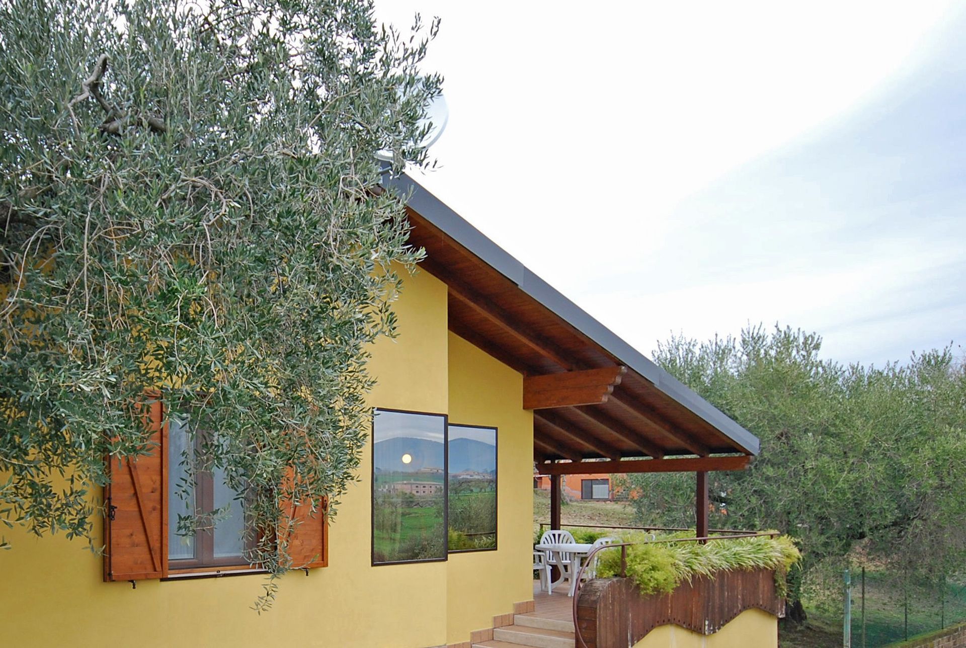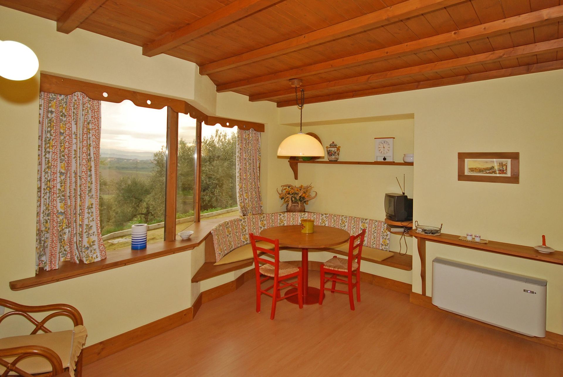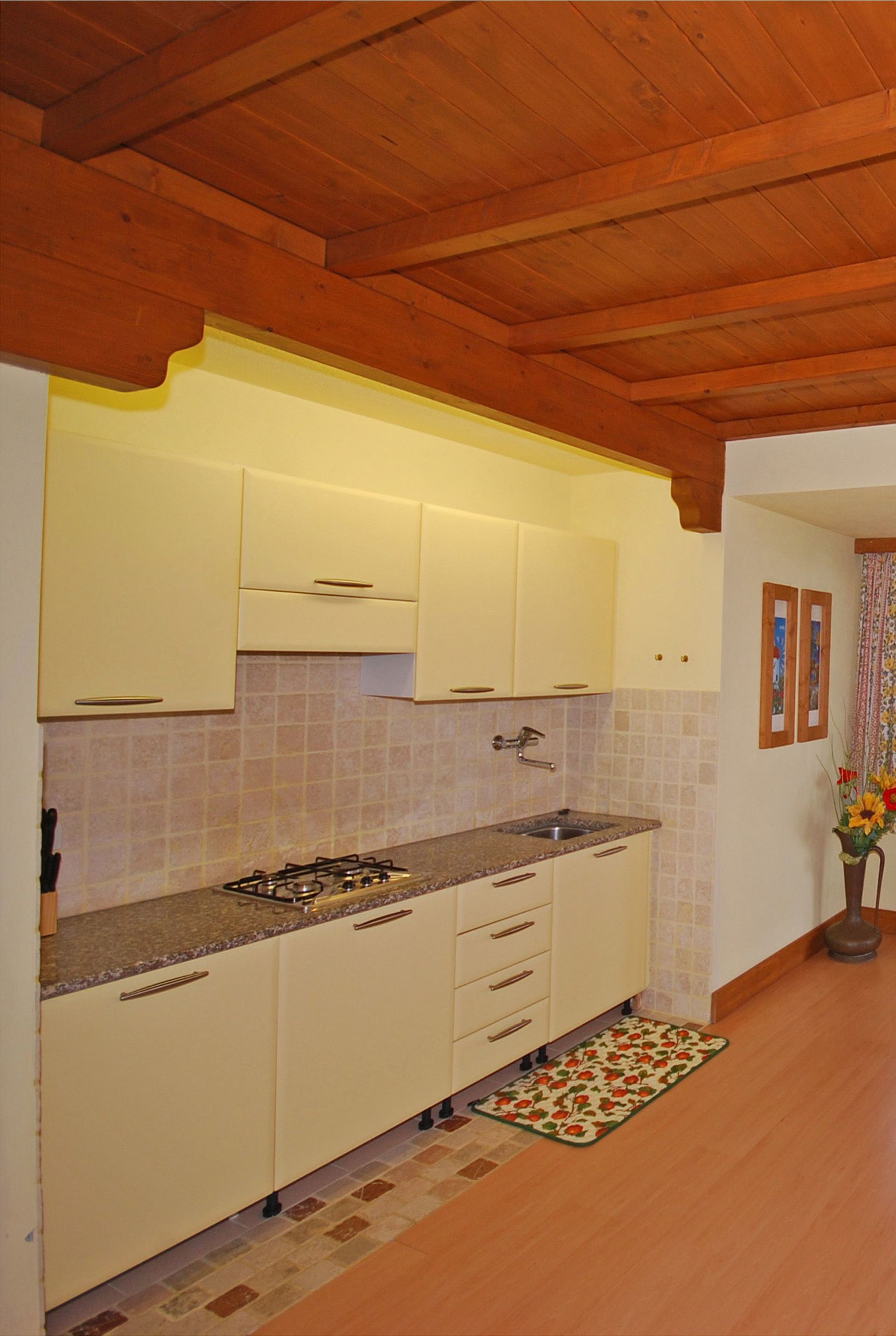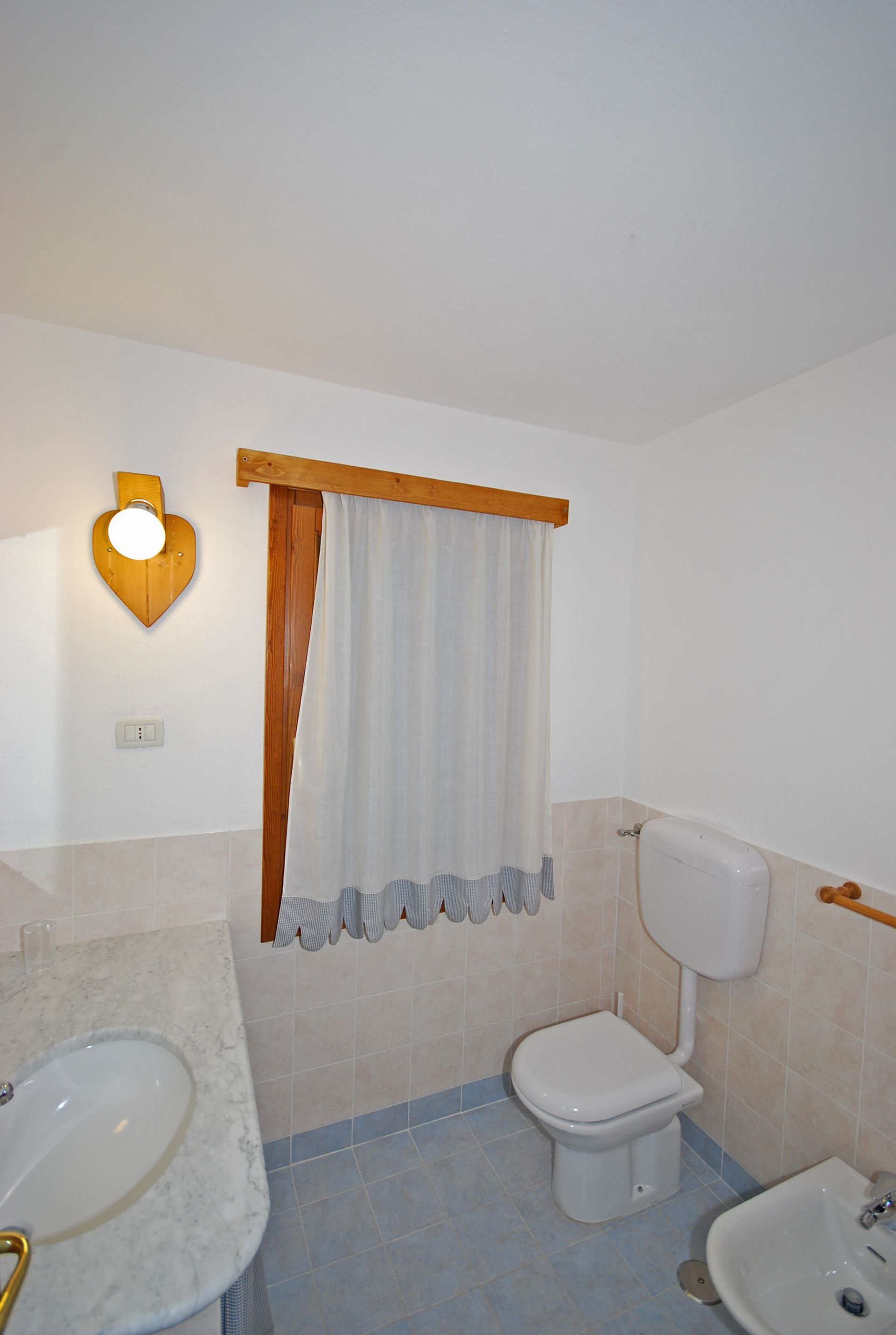 Ground floor: dining area with kitchen corner (microwave), double bedroom with private bathroom with shower, bedroom with 2 single beds, bathroom with shower. An additional single bed can be added free of charge (to sleep a 5th person).