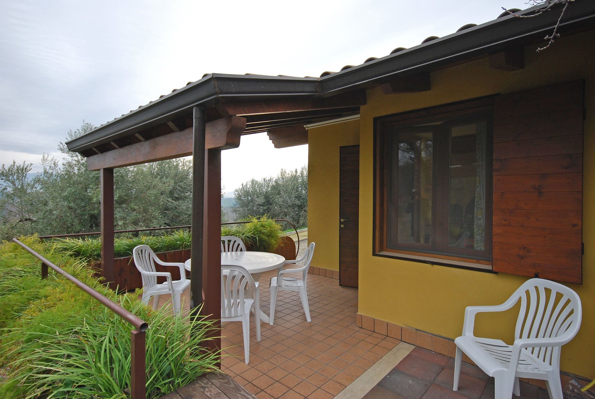 Private, equipped outdoor space on large covered patio with garden.