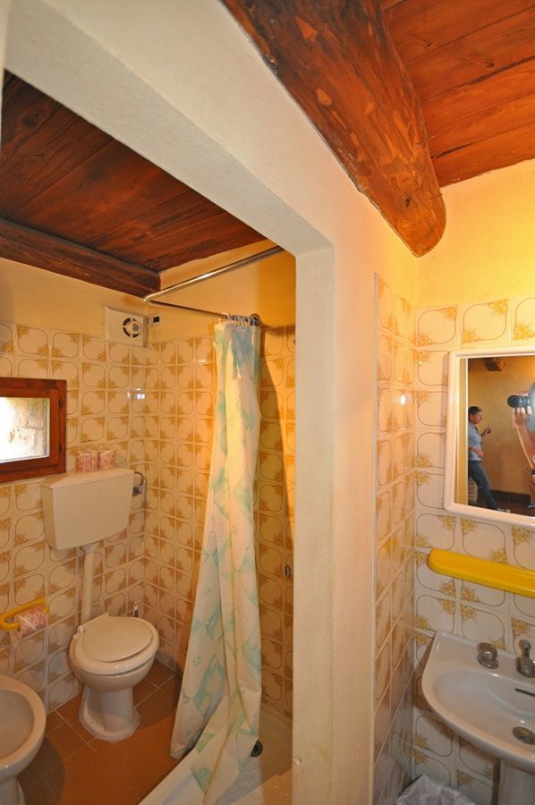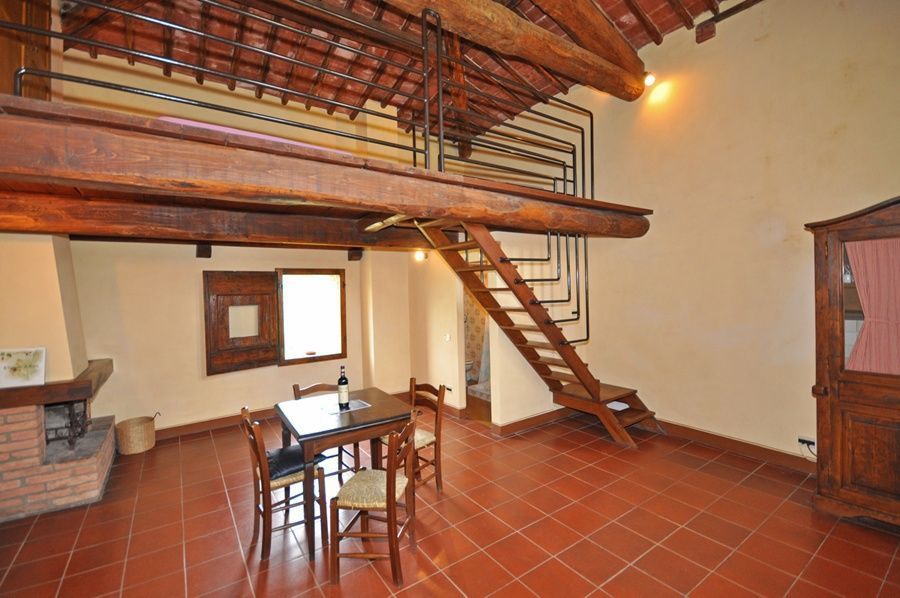 2nd floor: living-room with fireplace, dining area kitchen corner, bathroom with shower.