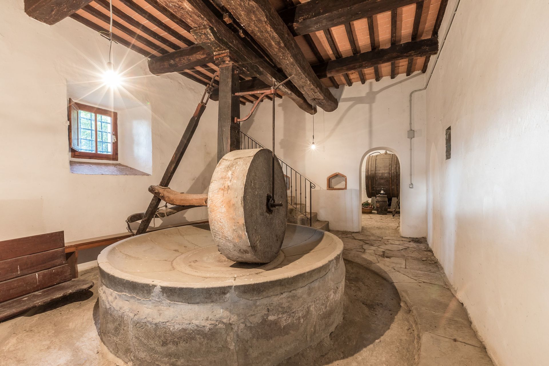 In the basement of the villa there is an ancient oil mill and the former cellars of the property once used for storing the wine and olive oil produced from the surrounding land.